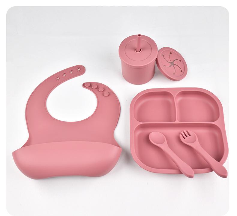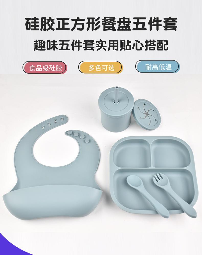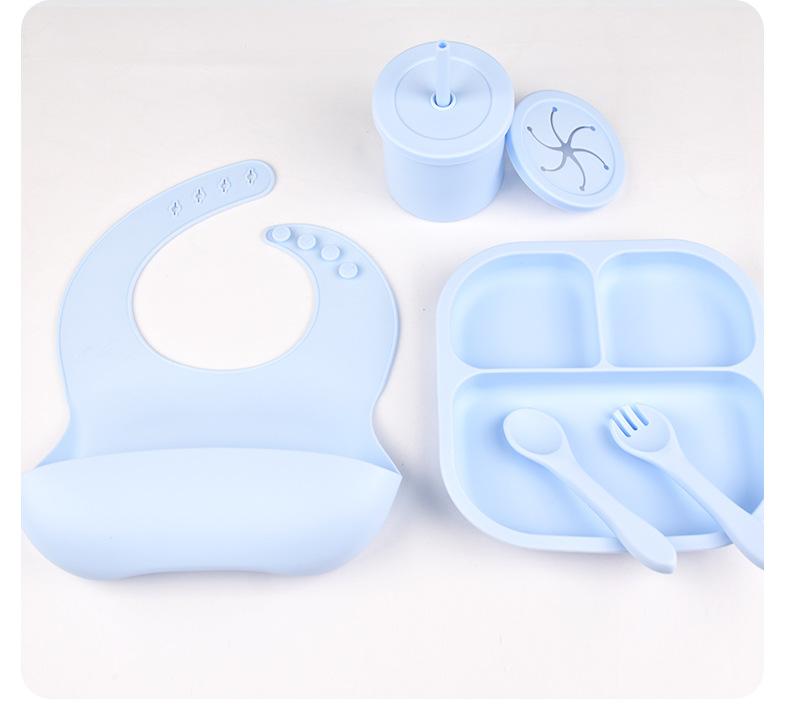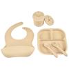 Tigela para Comida de Bebê Prato de Silicone de Grau Alimentício Utensílios de Treino para Alimentação de Bebê Conjunto de Talheres Infantis Tigela com Ventosa