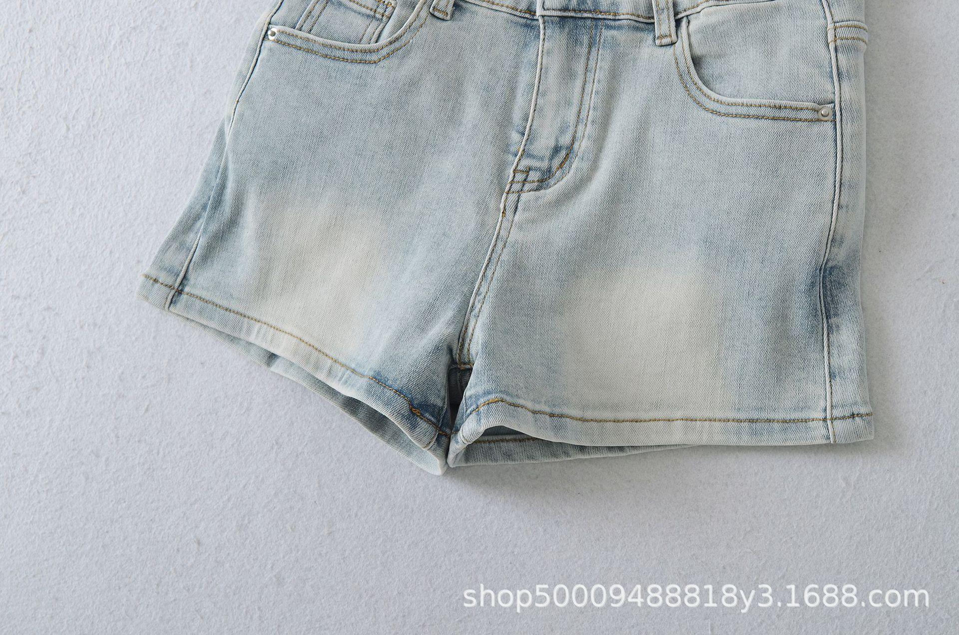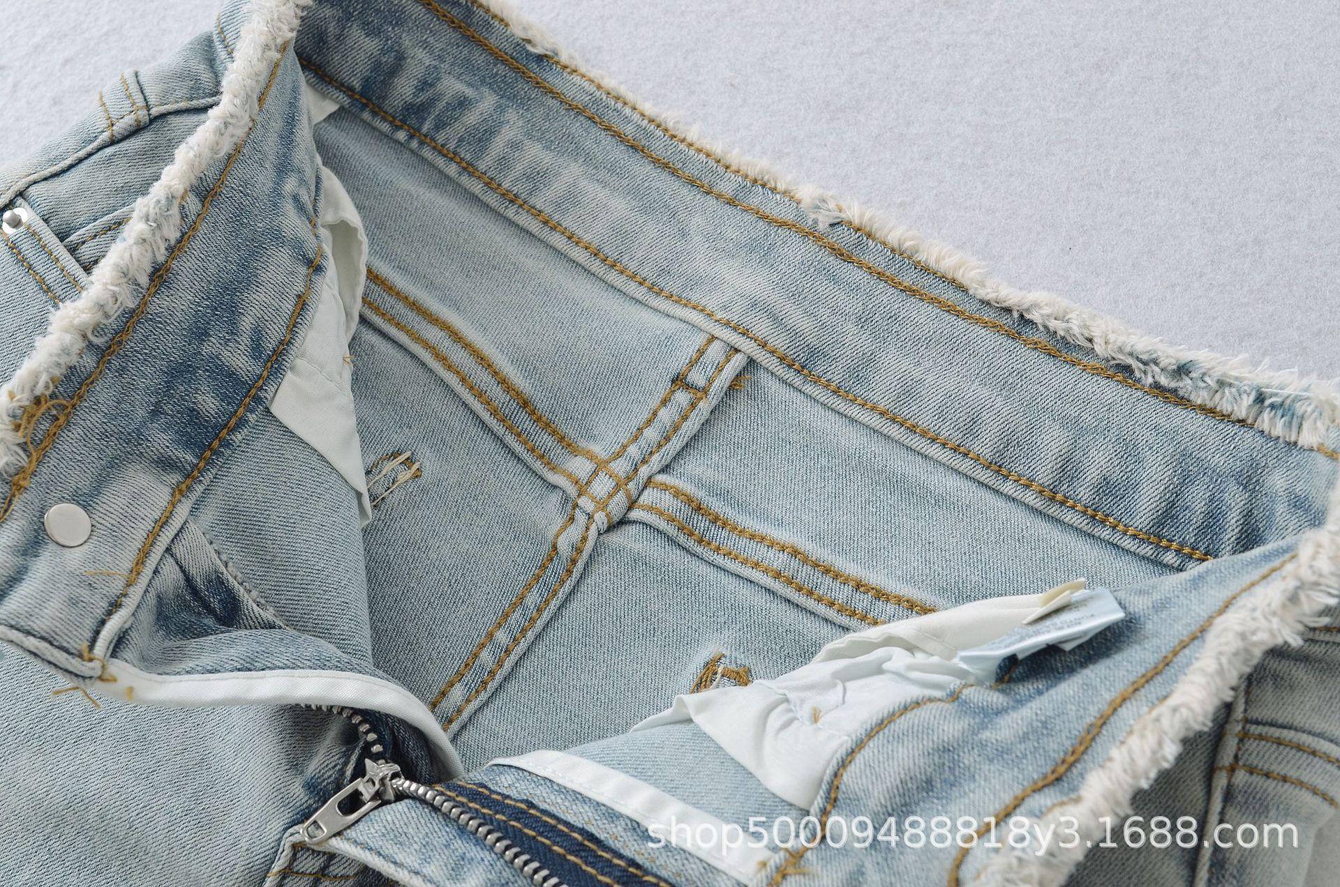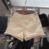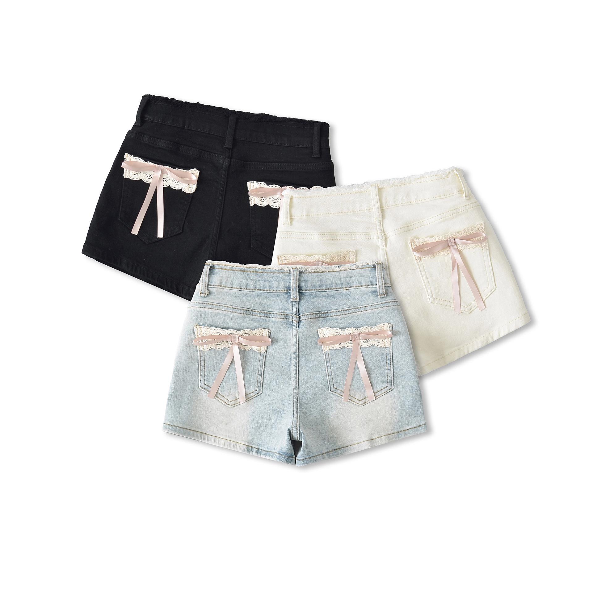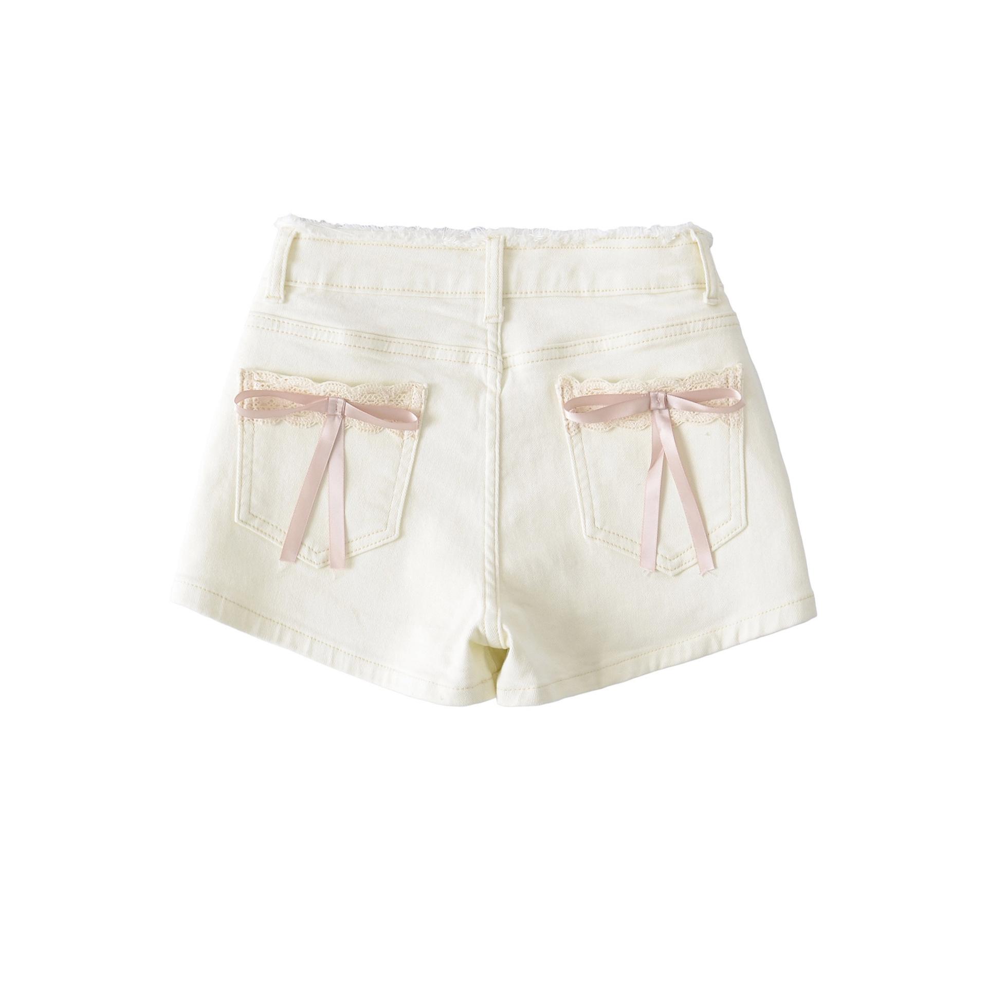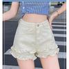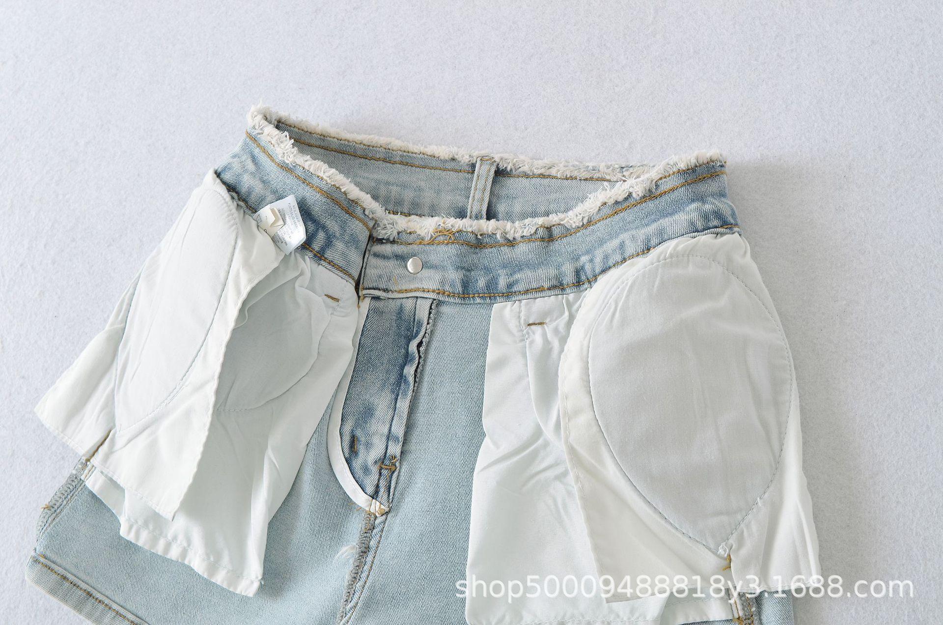 Doce e Puro Laço de Renda de Verão com Almofadas de Quadril Shorts Jeans Lavados e Desgastados Azul Claro Cintura Alta Hot Pants para Mulheres
