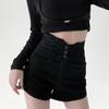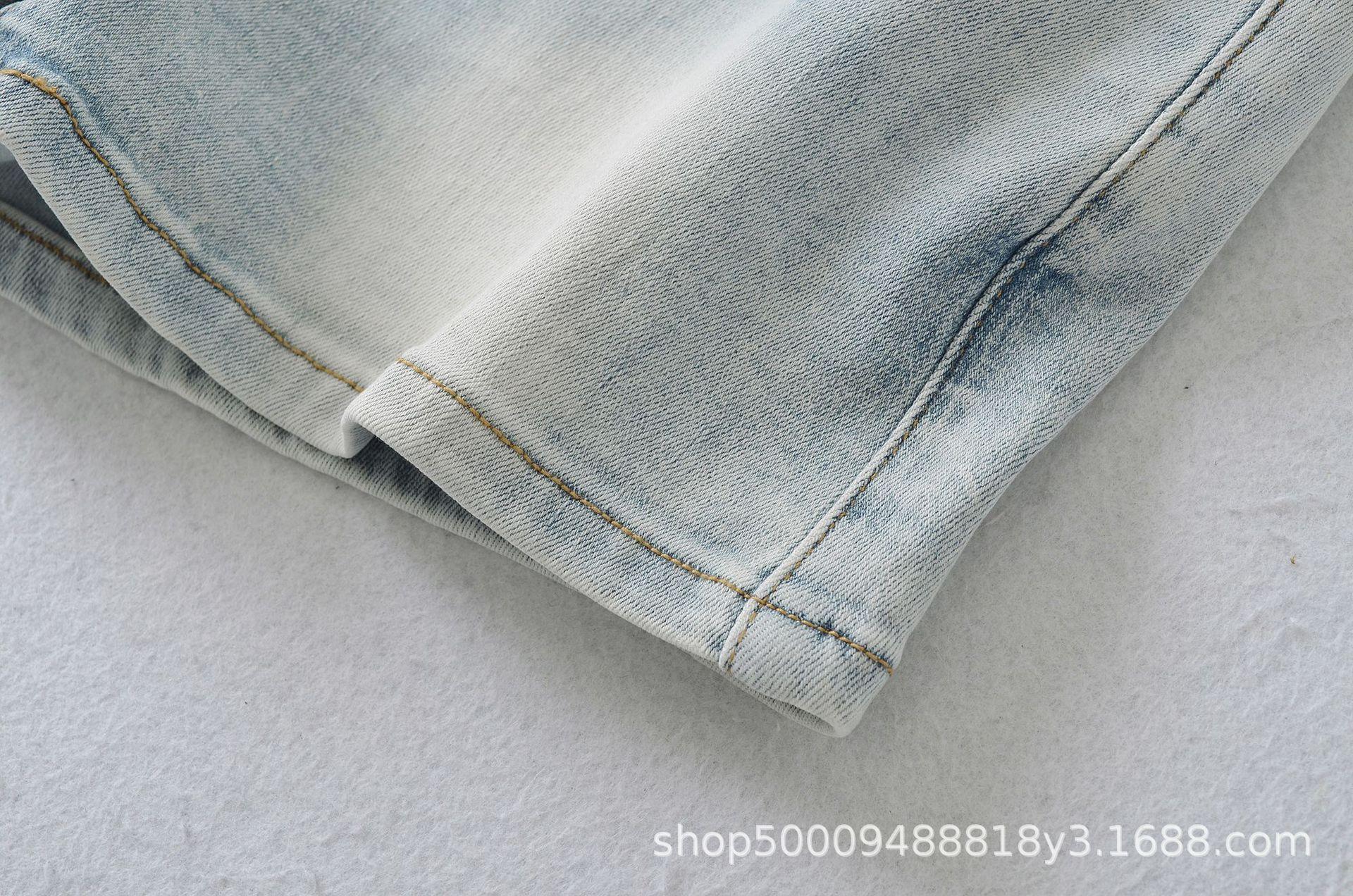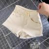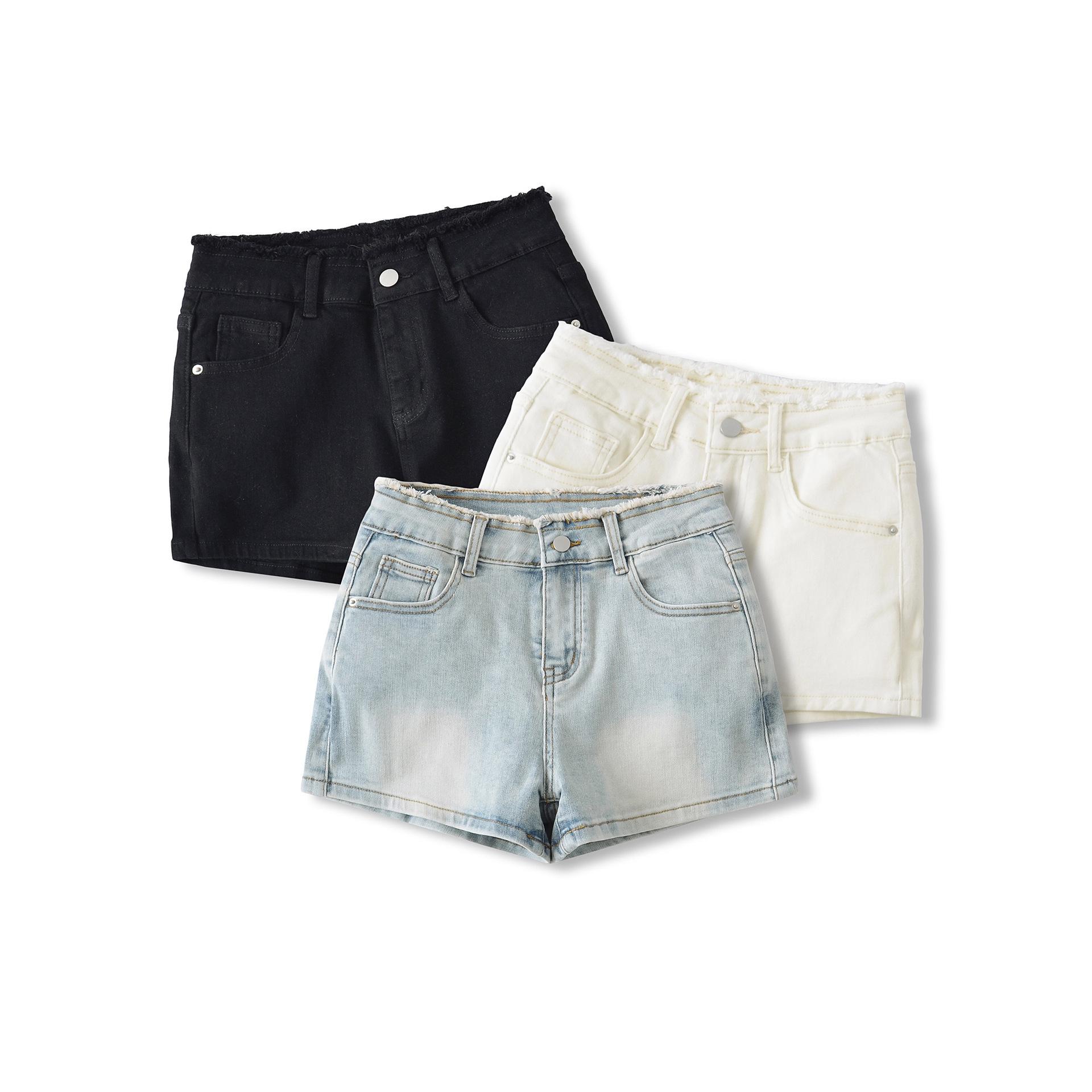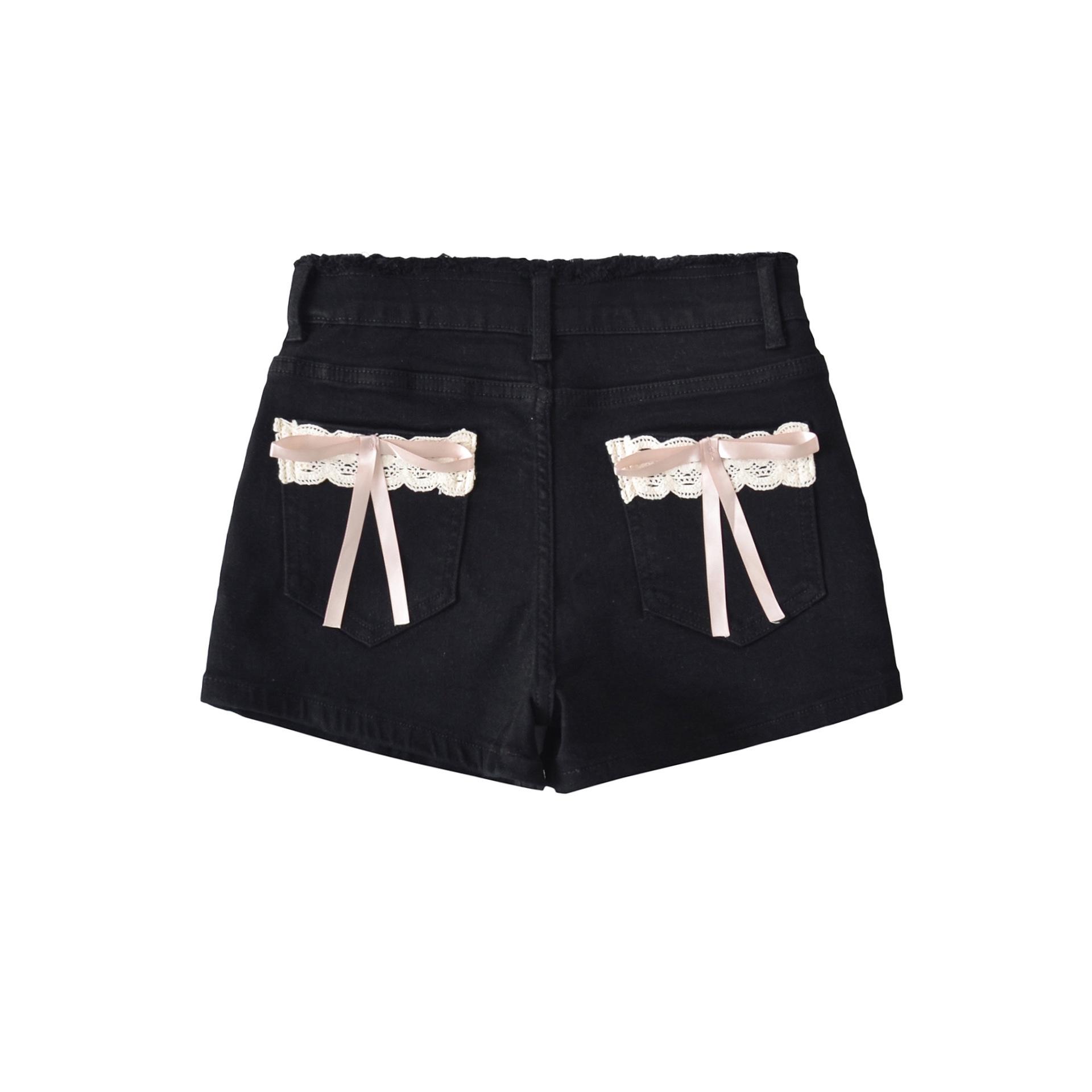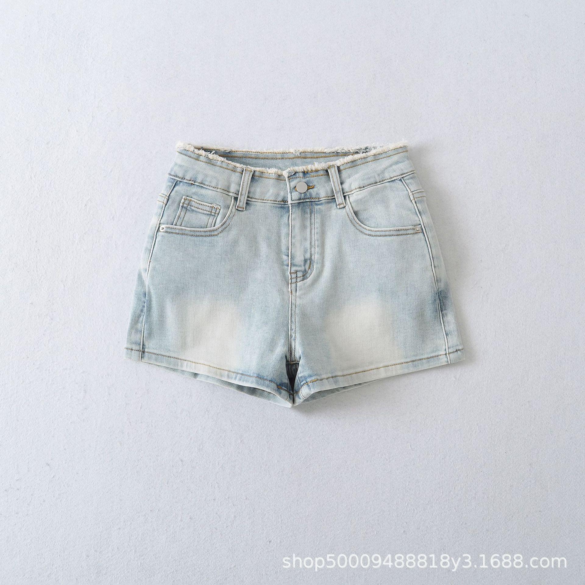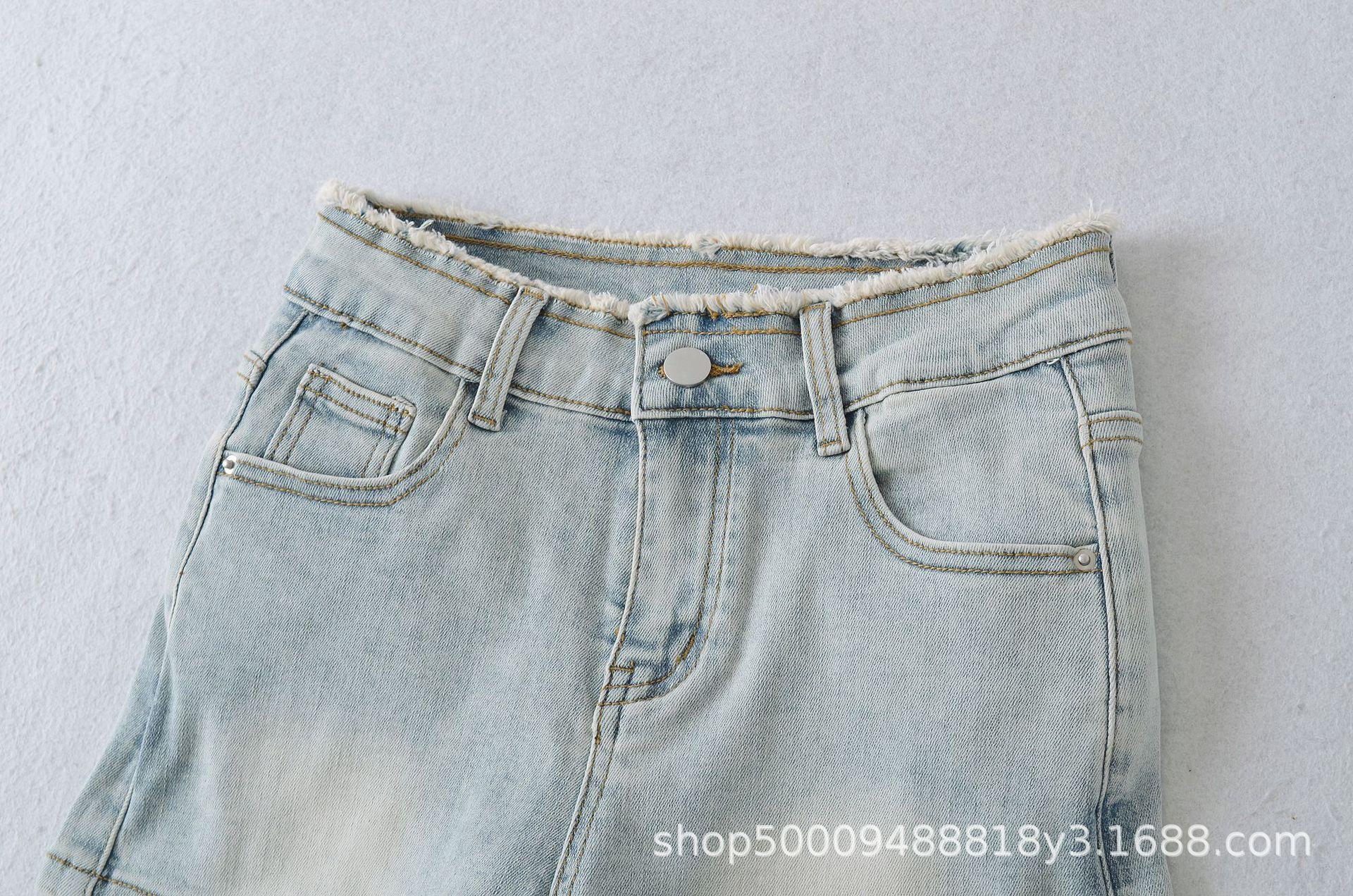 Doce e Puro Laço de Renda de Verão com Almofadas de Quadril Shorts Jeans Lavados e Desgastados Azul Claro Cintura Alta Hot Pants para Mulheres
