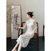 Verão 2025 Novo Estilo Retro Chinês Sexy Slim Design Cheongsam Melhorado Vestido com Fenda