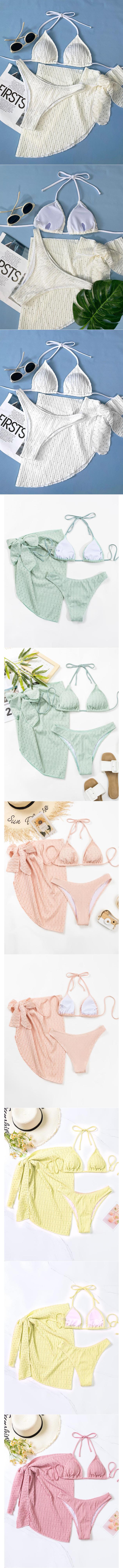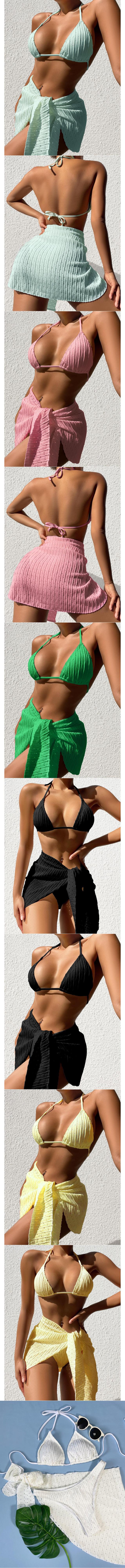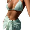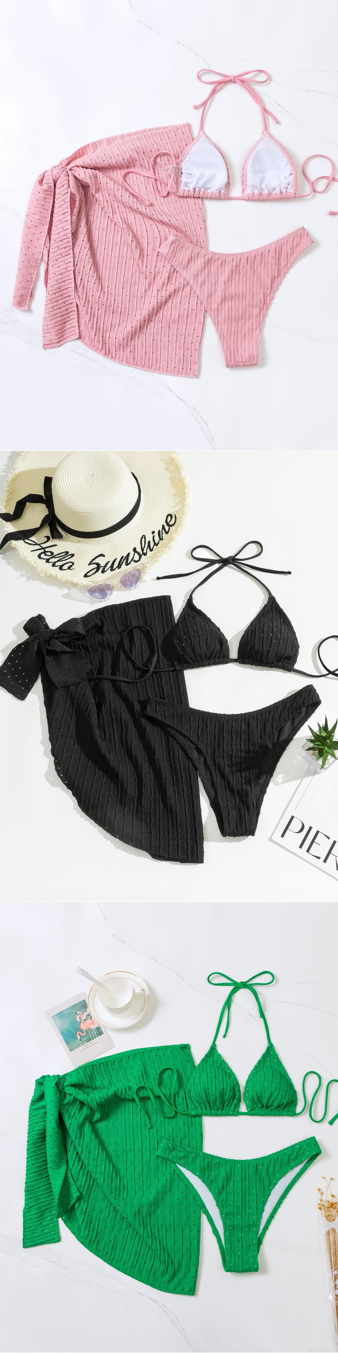 Novo Fato de Banho Feminino de Três Peças Europeu e Americano Sexy Biquíni Sem Costas com Cadarço Roupa de Banho ins Comércio Exterior biquíni