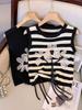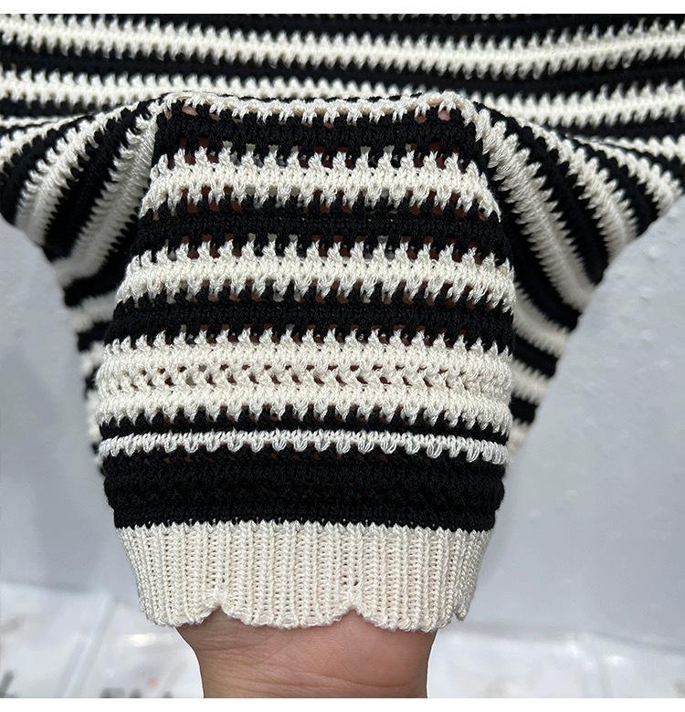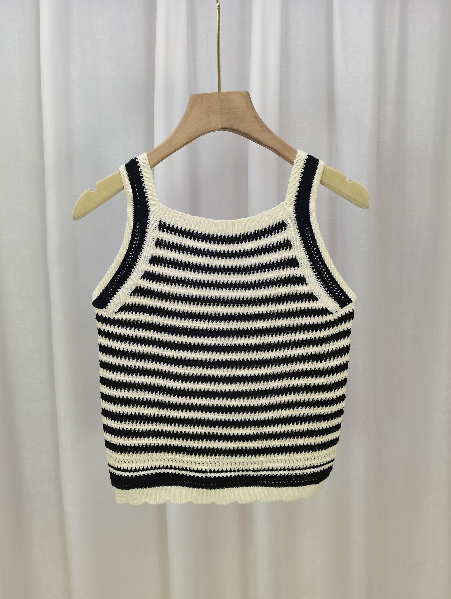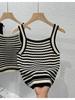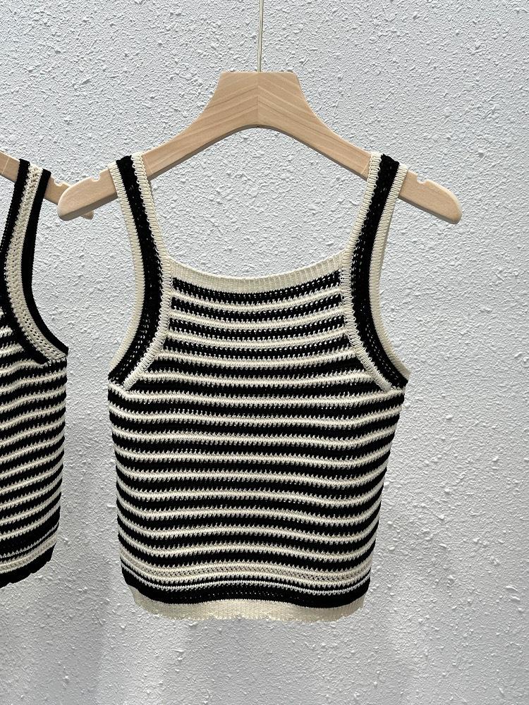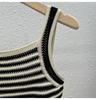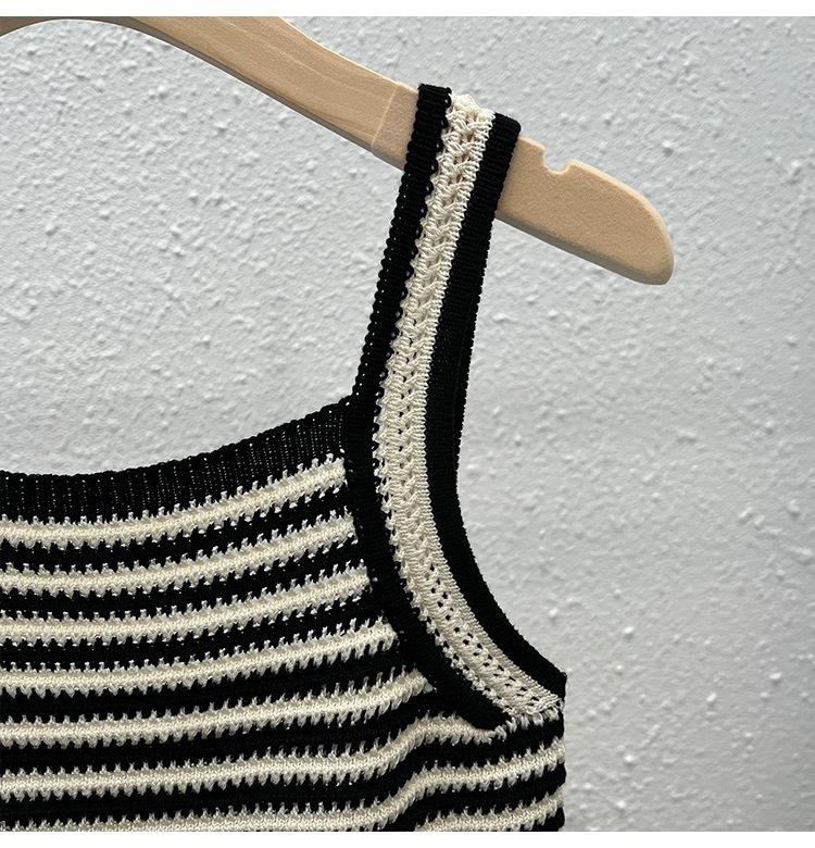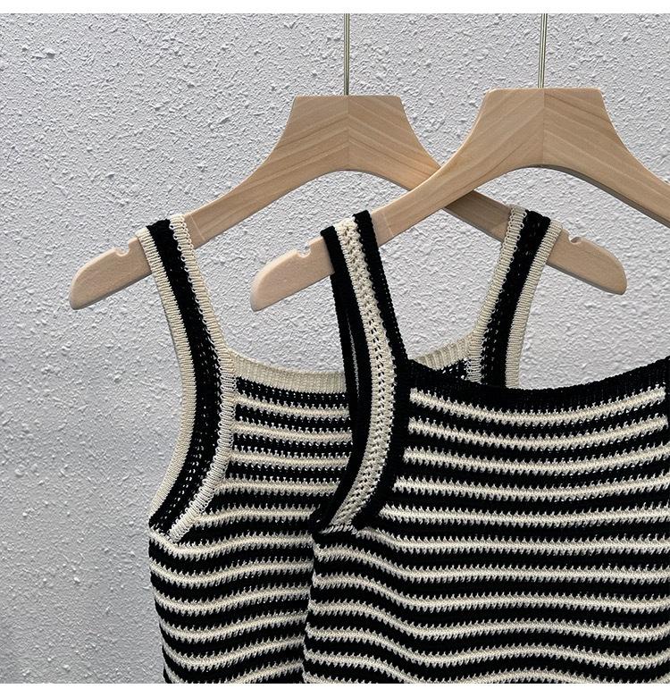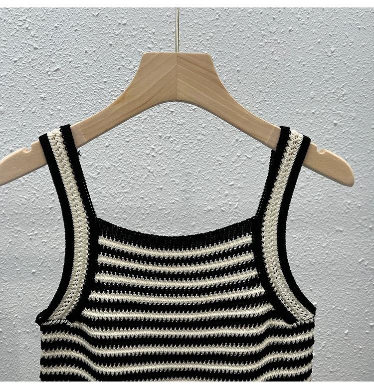 Regata listrada de malha feminina de verão para usar por cima, solta, estilo francês, roupa íntima vazada, regata sem mangas