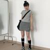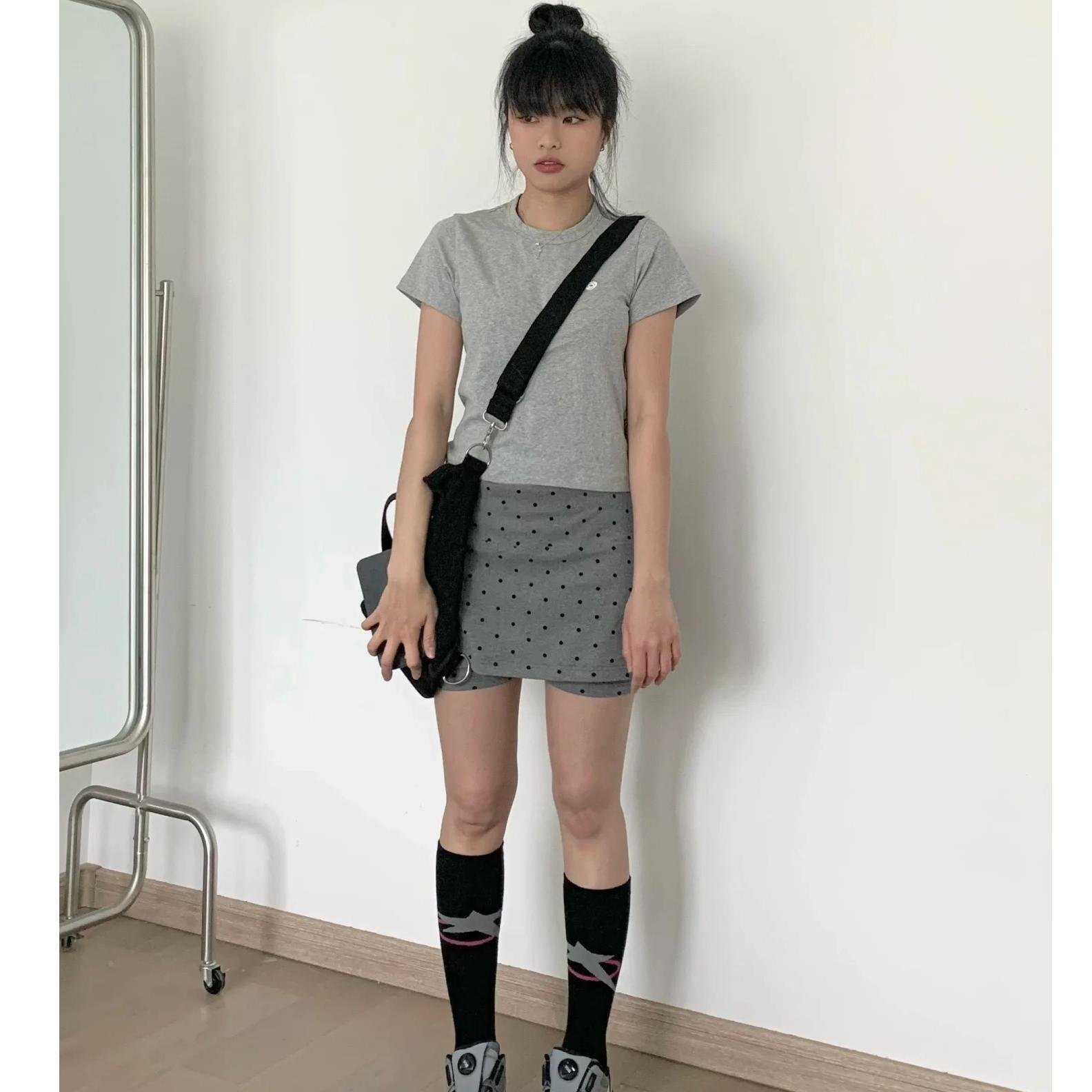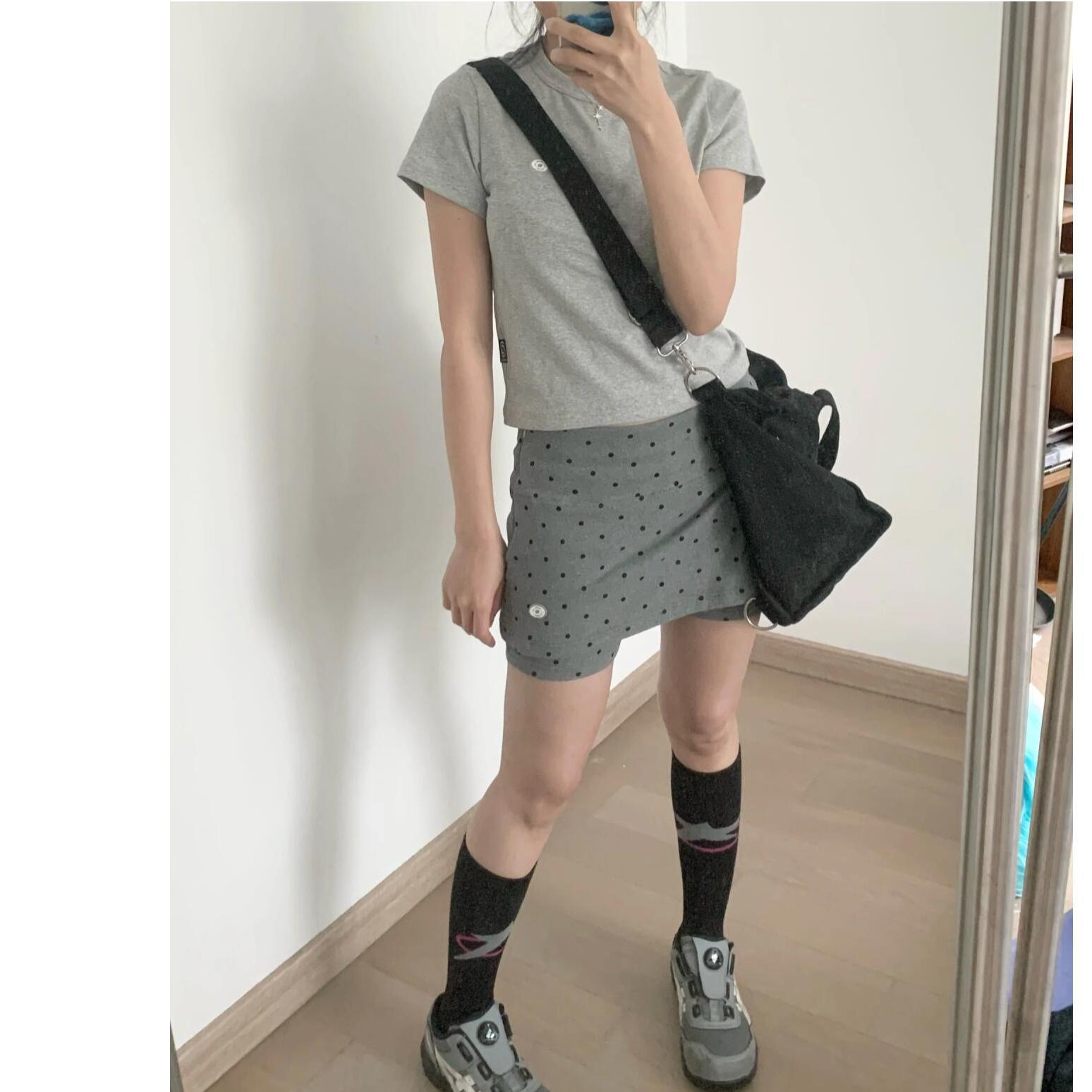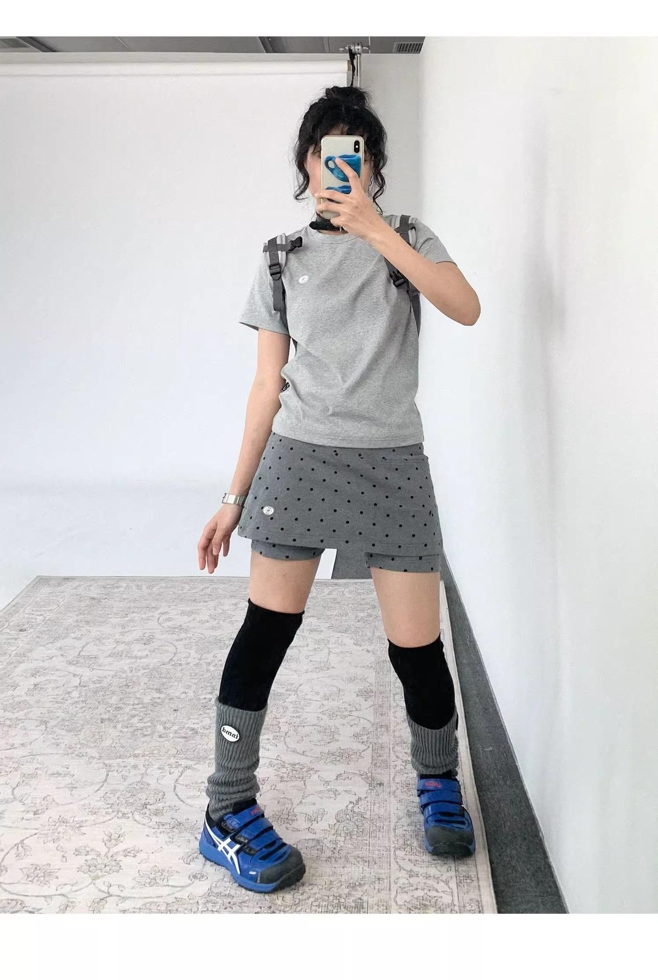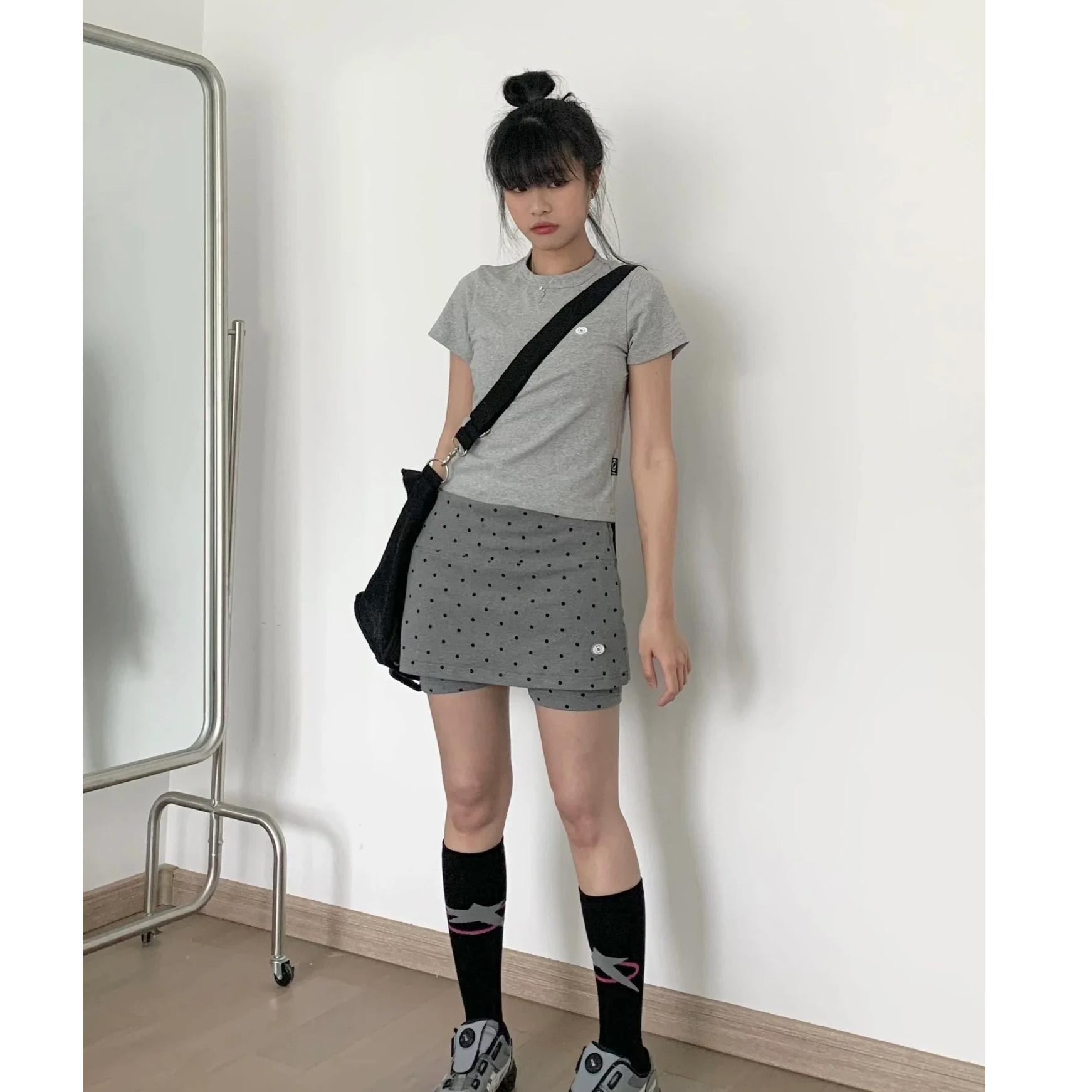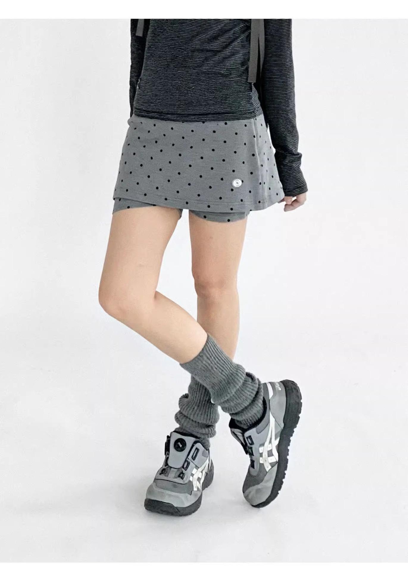 Calça de Yoga Cinza Stretch Saia Falsa Duas Peças Ajuste Slim Que Abraça os Quadris Linha A Saia Esportiva Curta Casual para Exterior Secagem Rápida Saia Midi