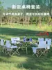 Mesa e Cadeiras de Camping, Mesa de Enrolar Dobrável para Exterior, Mesa de Piquenique, Mesa e Cadeira Portátil Integrada, Conjunto Completo de Equipamentos, Loja Nova