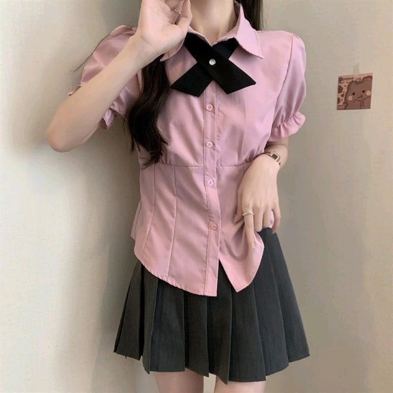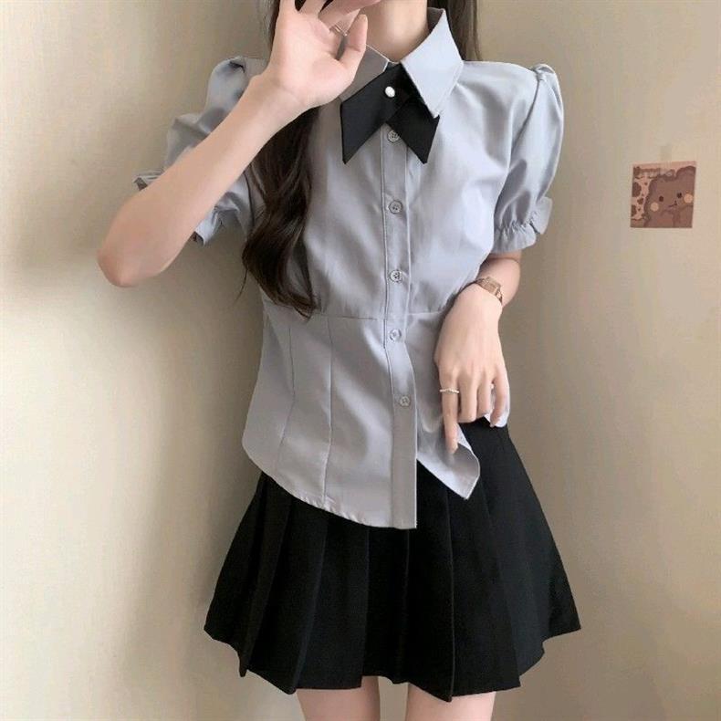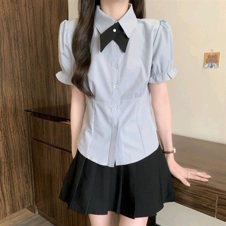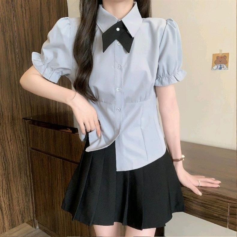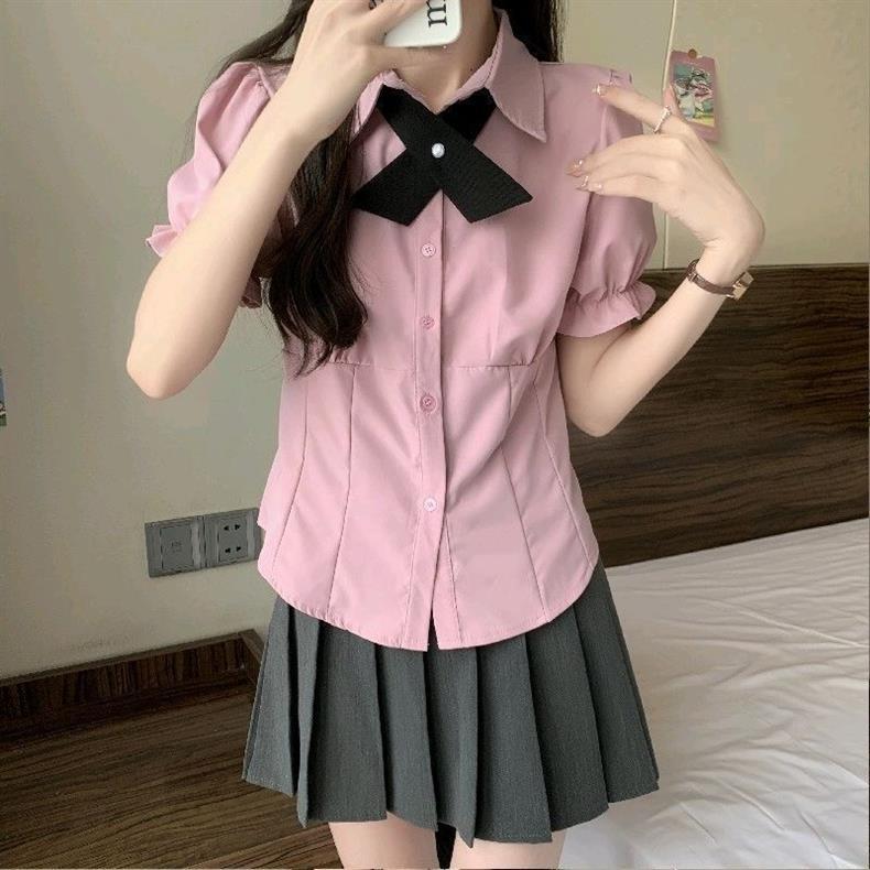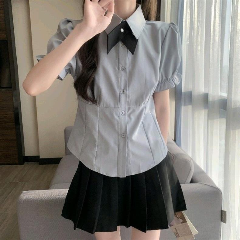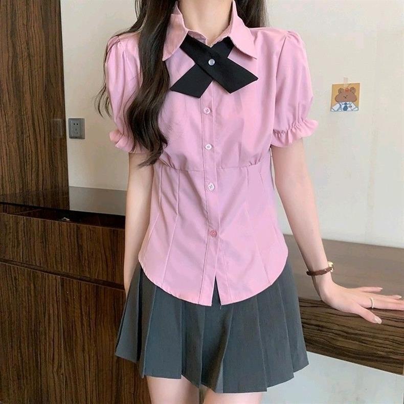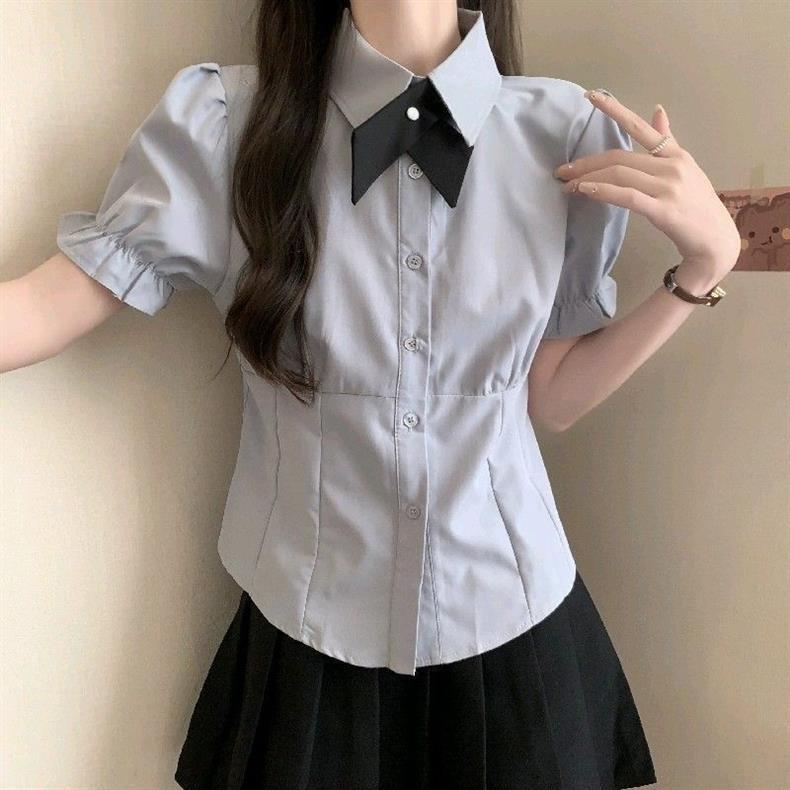 Camisa uniforme jk estilo universitário feminina 2024 verão nova camisa manga curta cintura hot girl nicho terno francês