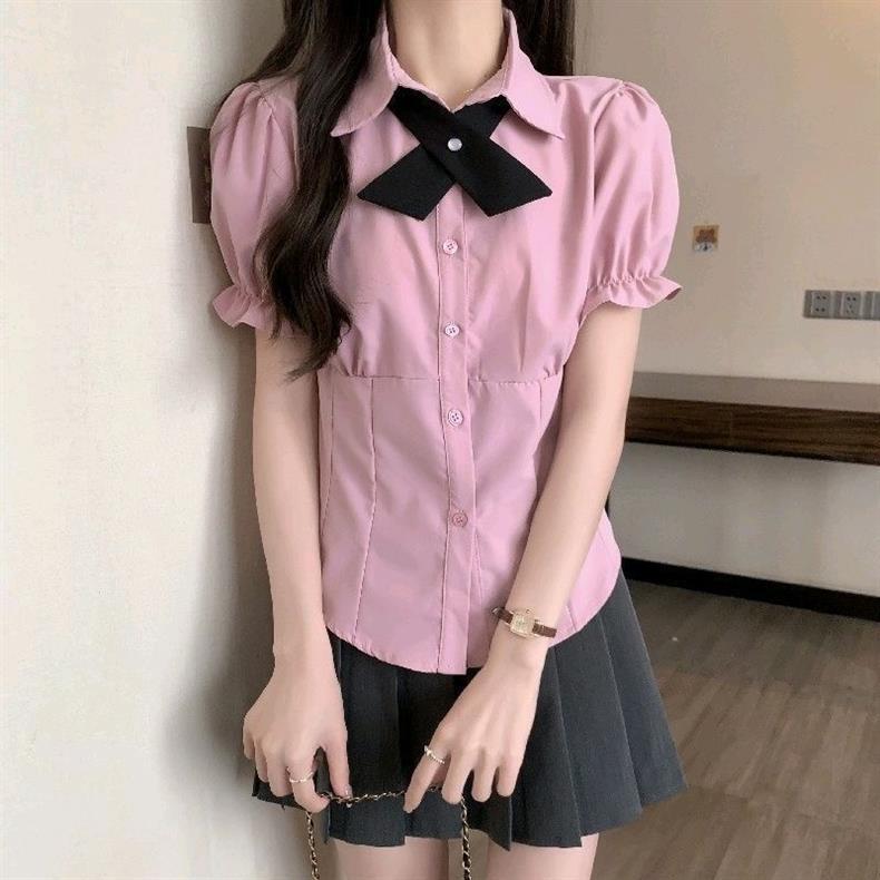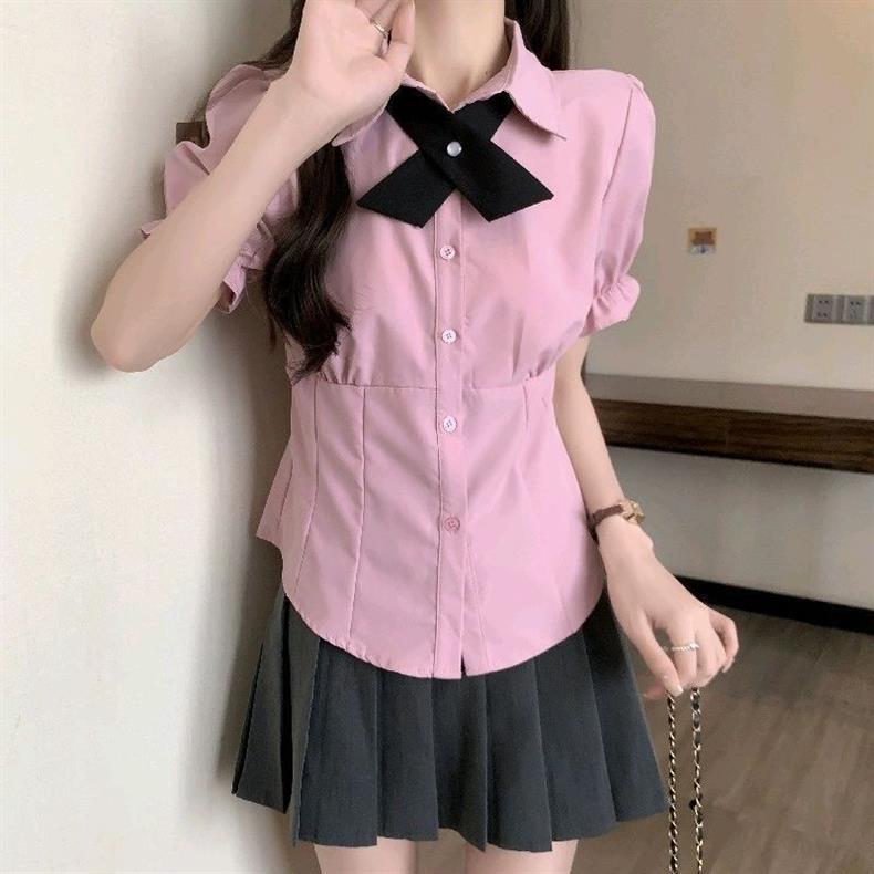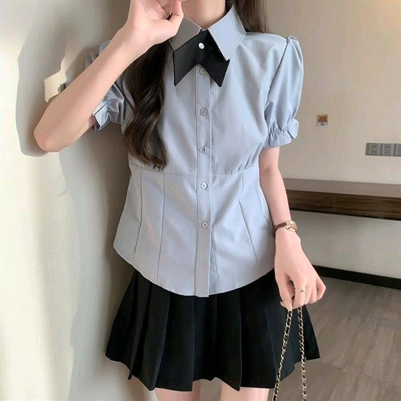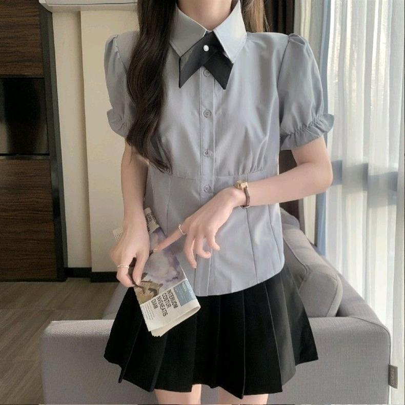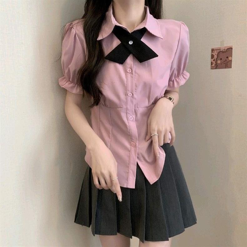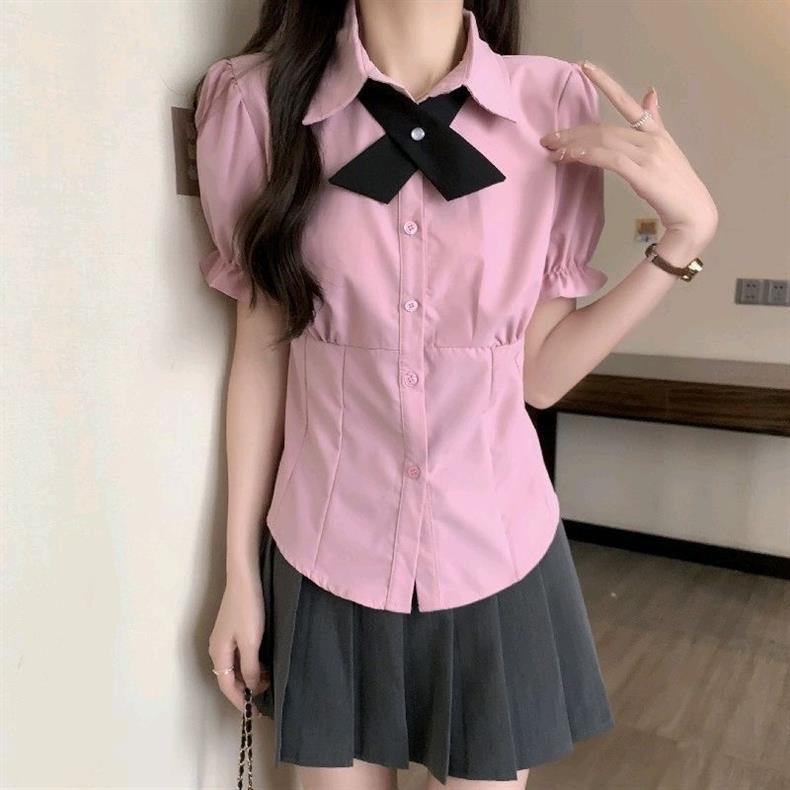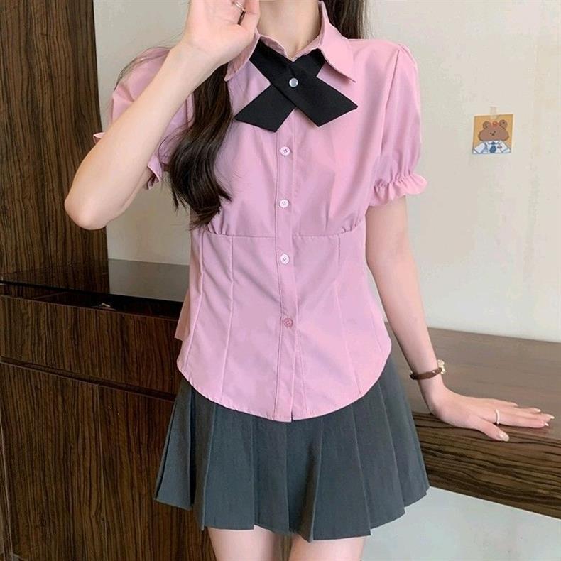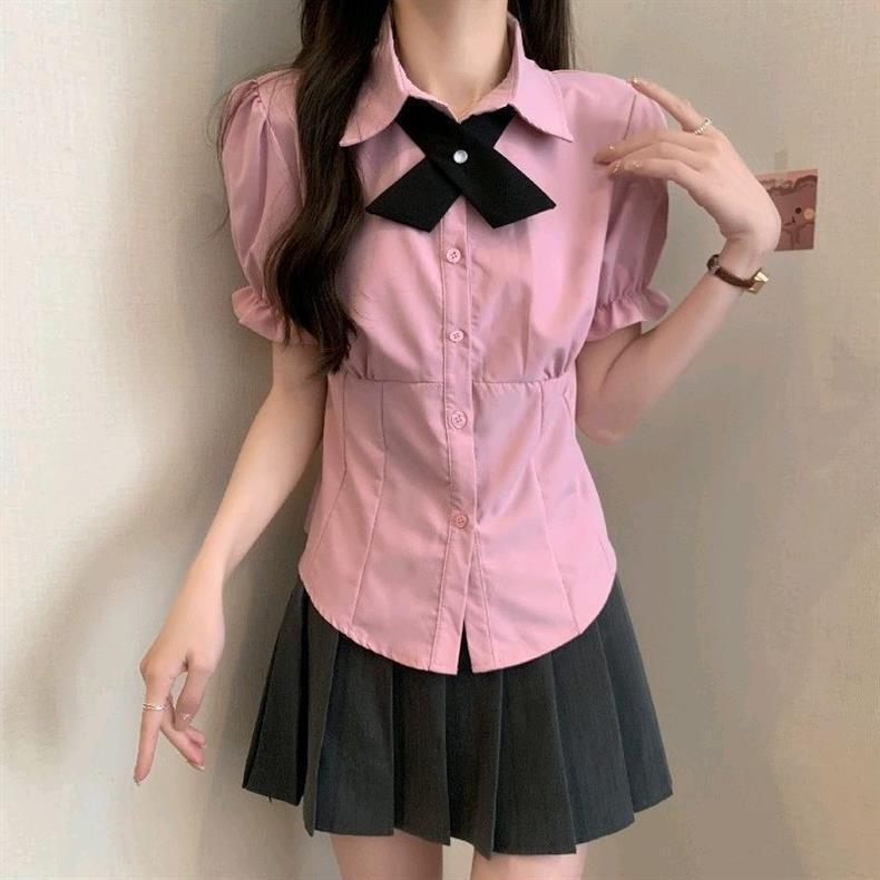 Camisa uniforme jk estilo universitário feminina 2024 verão nova camisa manga curta cintura hot girl nicho terno francês