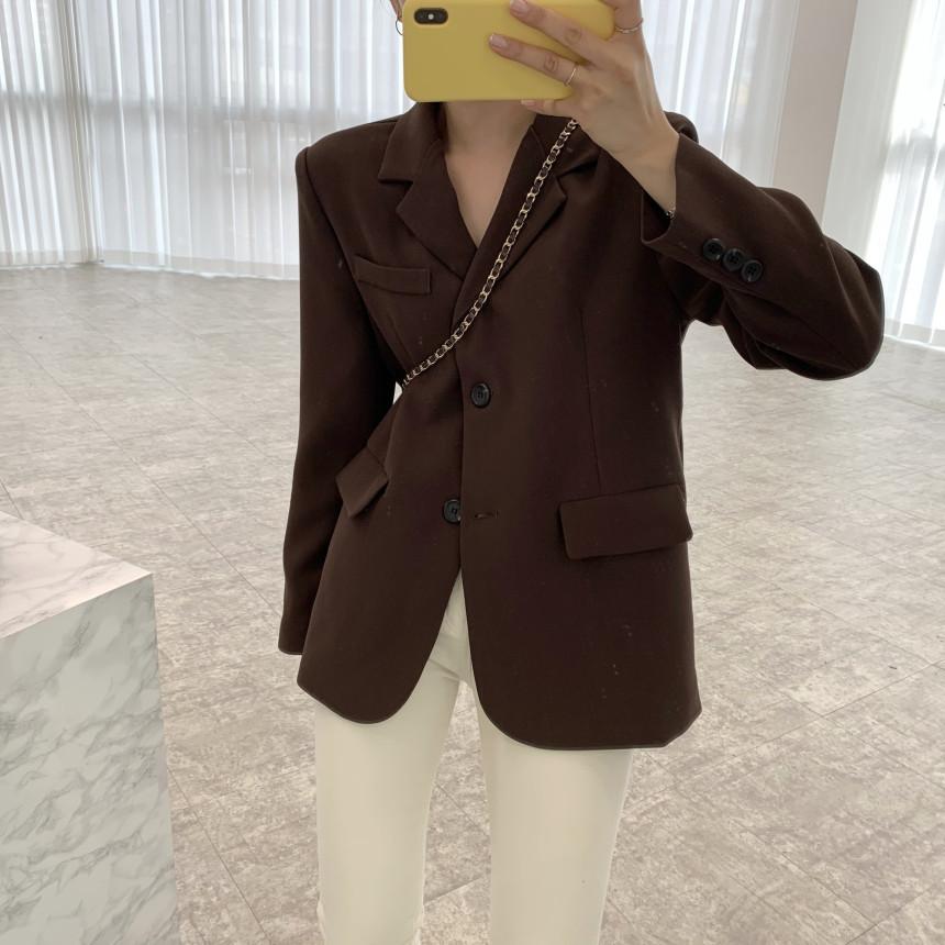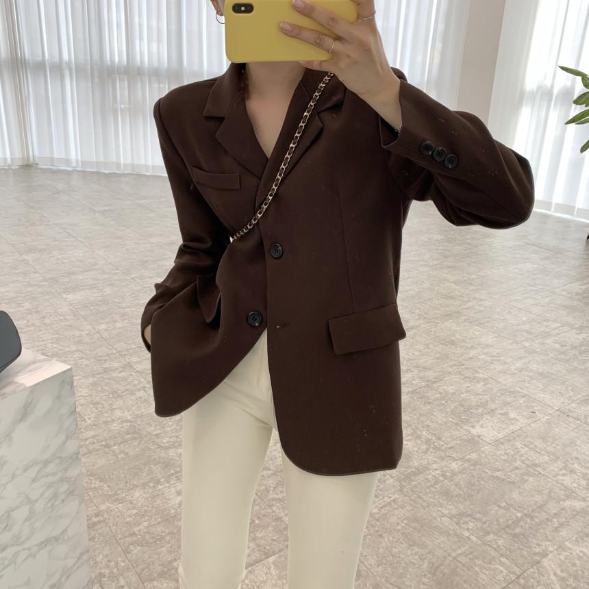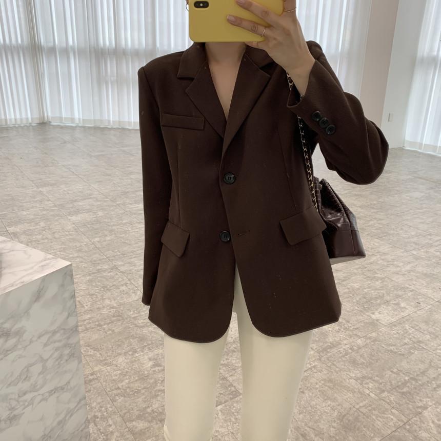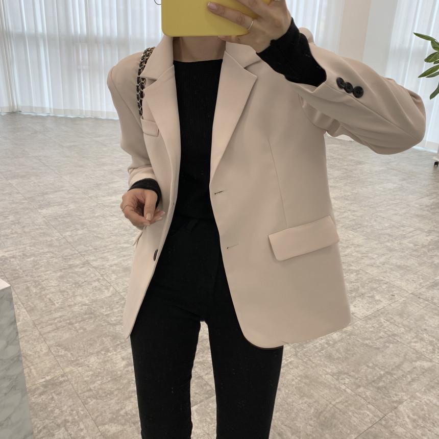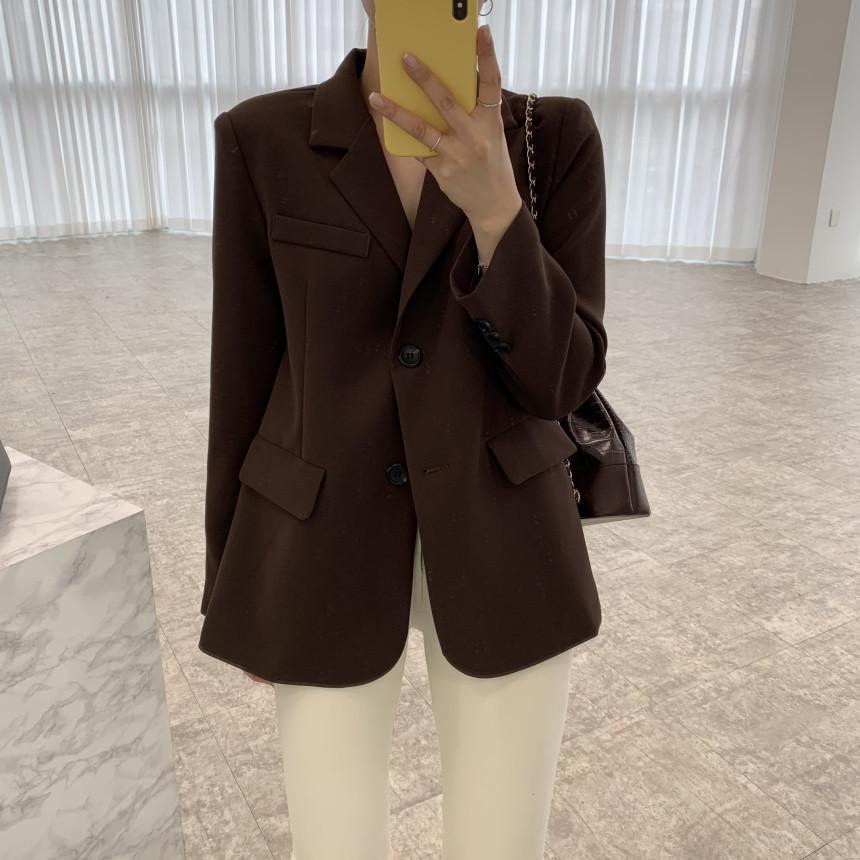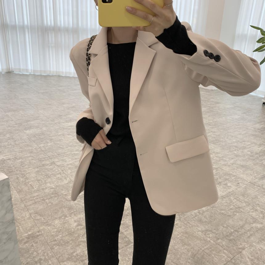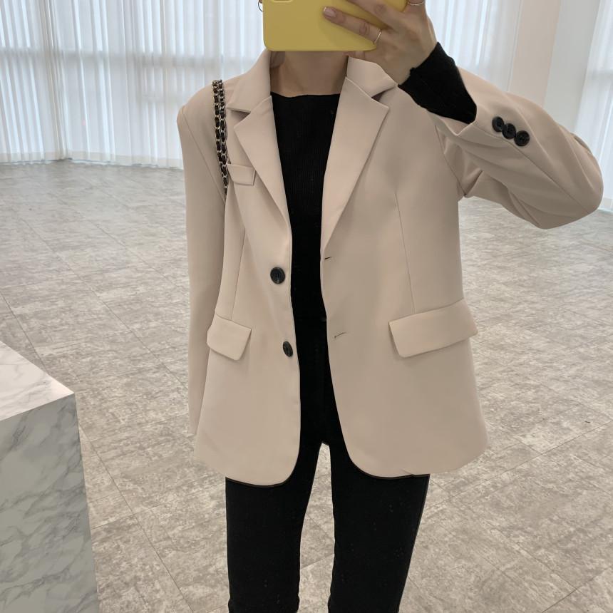 Blazer feminino coreano chique elegante de lapela, duas peças, abotoamento simples, solto casual, pequeno