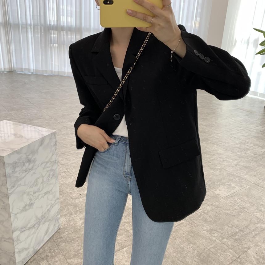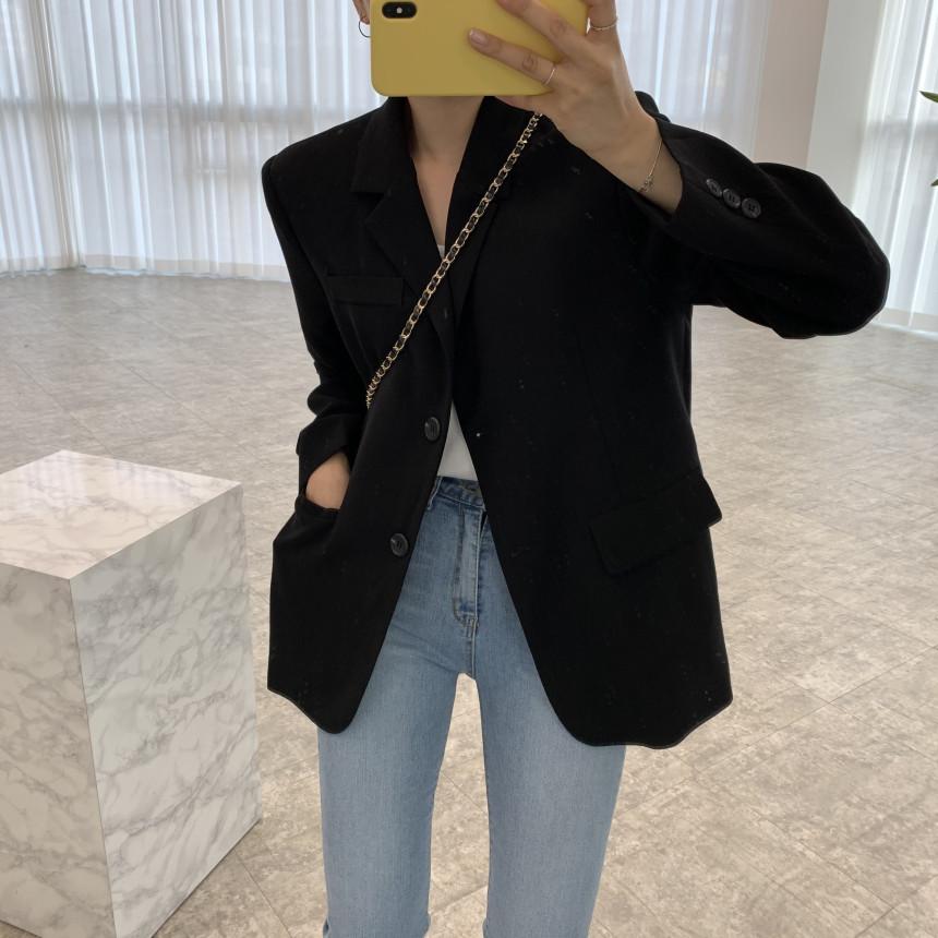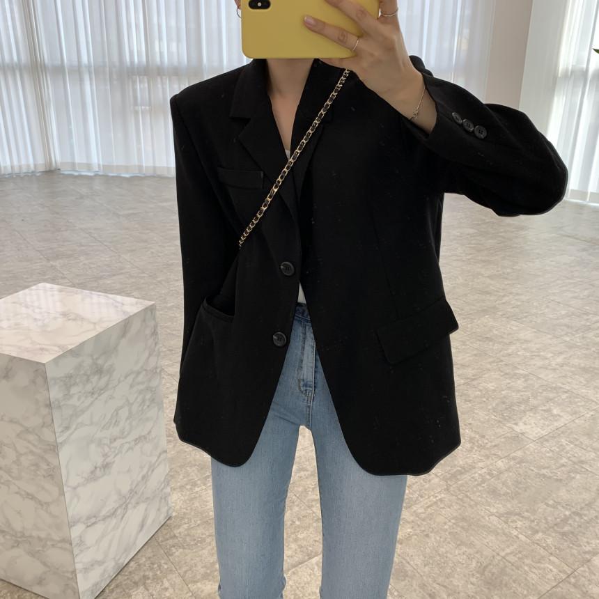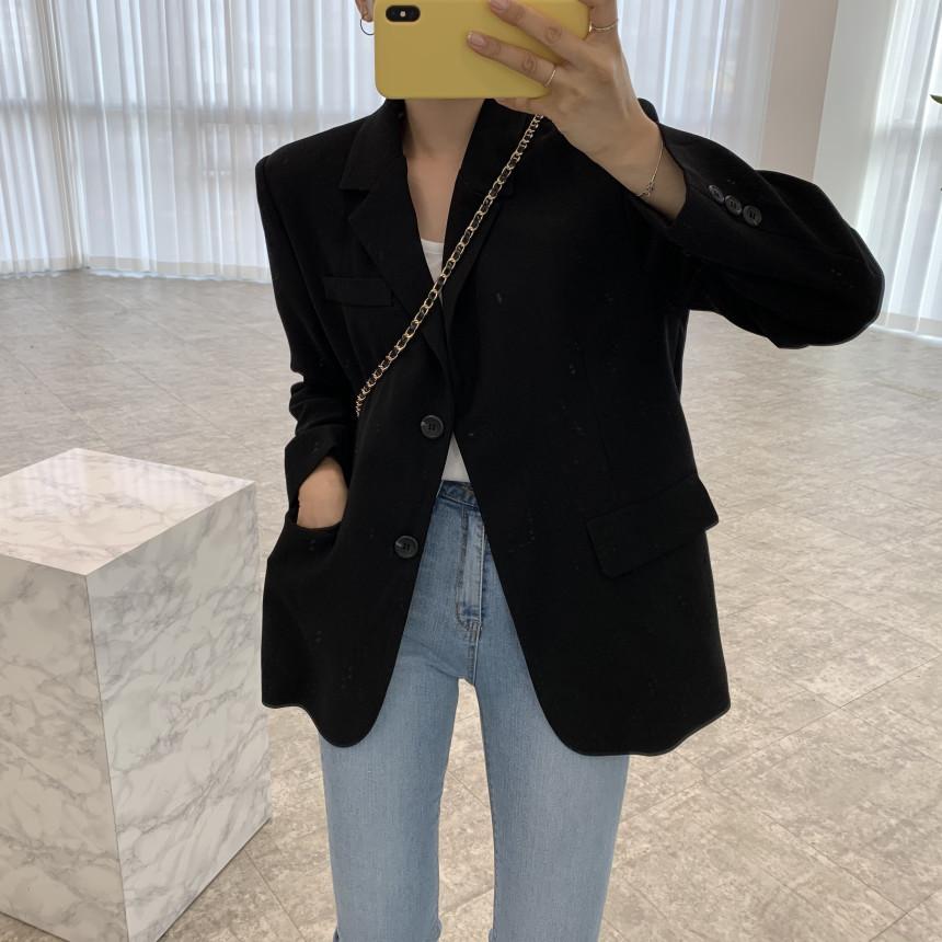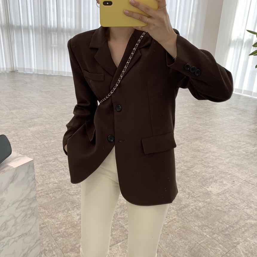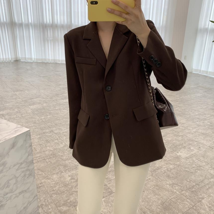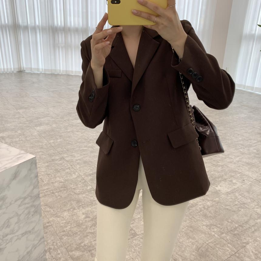 Blazer feminino coreano chique elegante de lapela, duas peças, abotoamento simples, solto casual, pequeno