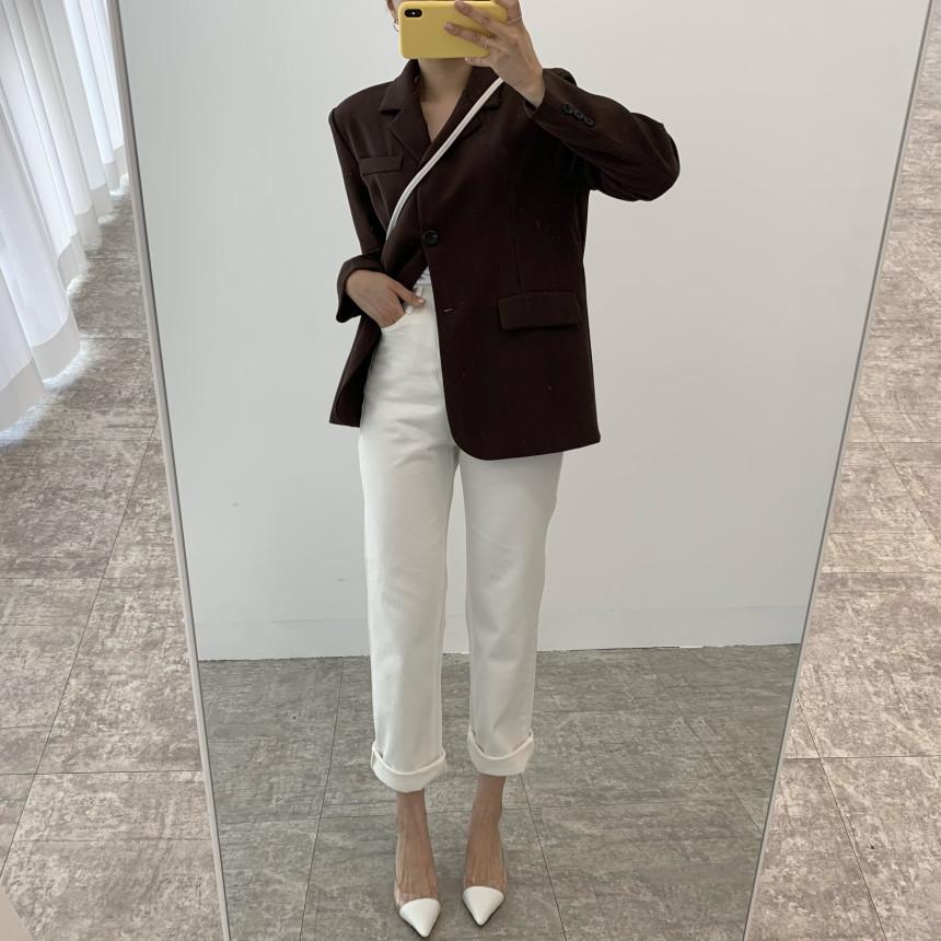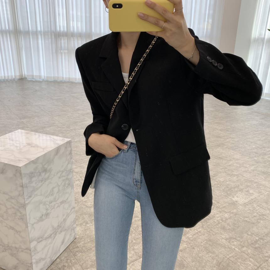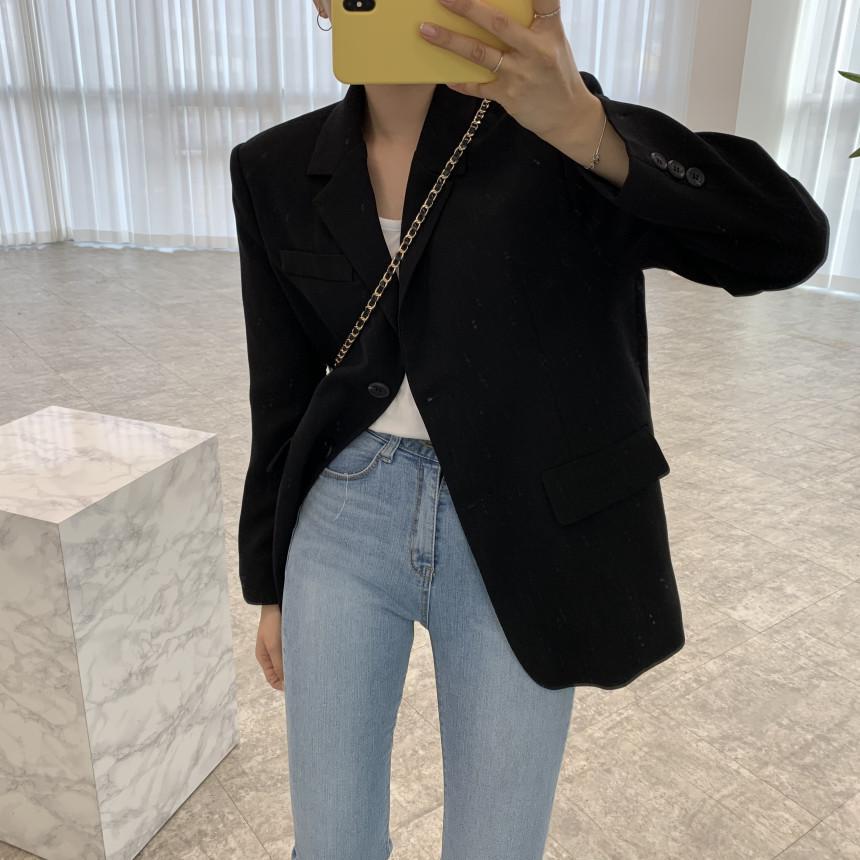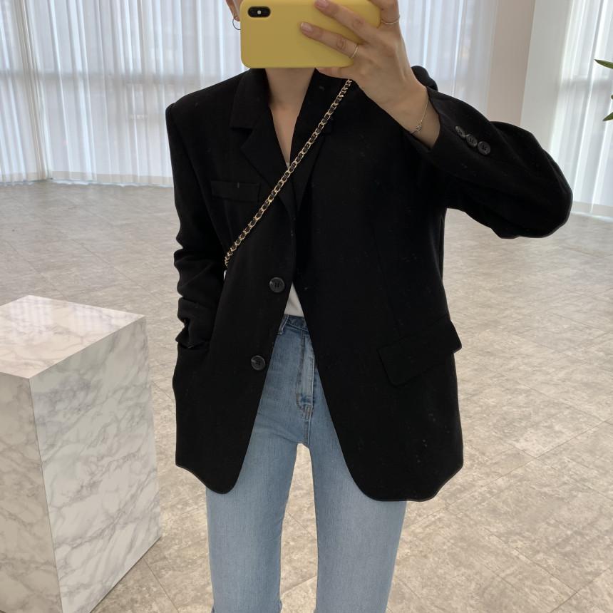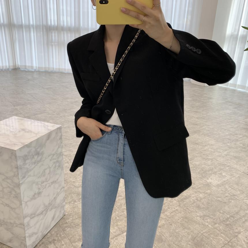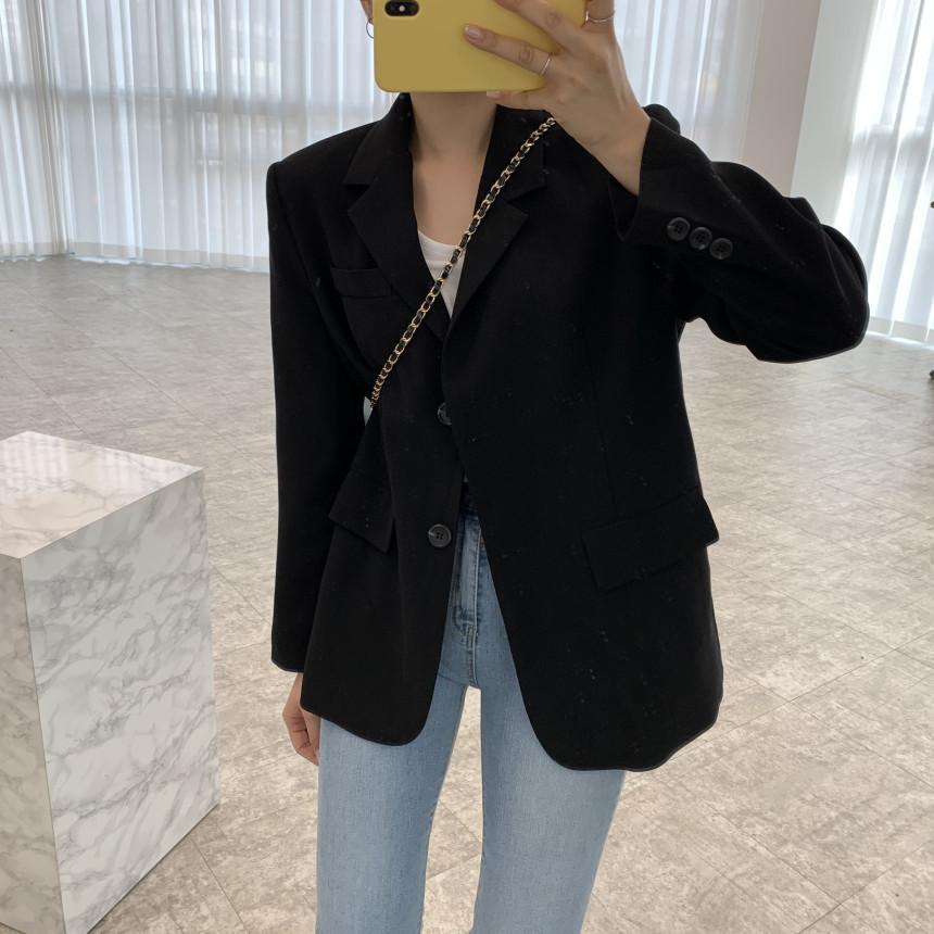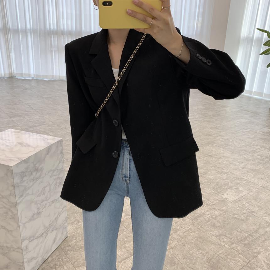 Blazer feminino coreano chique elegante de lapela, duas peças, abotoamento simples, solto casual, pequeno
