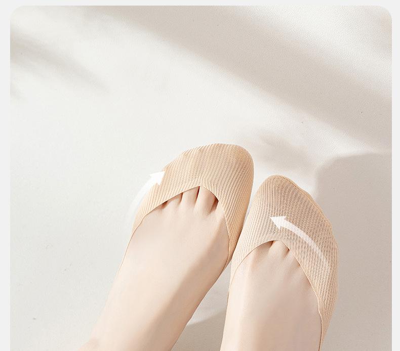 Meias sapatilha femininas antiderrapantes à prova de calcanhar verão finas fundo puro algodão meias de gelo com sapatos de salto alto boca rasa meias invisíveis