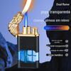 Cor gradiente personalidade criativa fogo duplo maçarico direto chama azul fogo aberto isqueiro inflável visual transparente luz azul armazém de gás transfronteiriço
