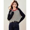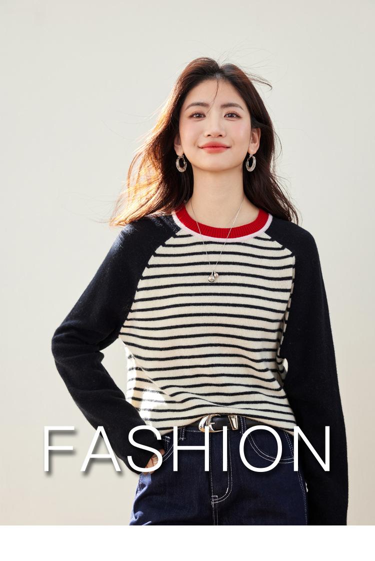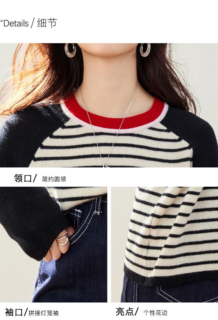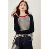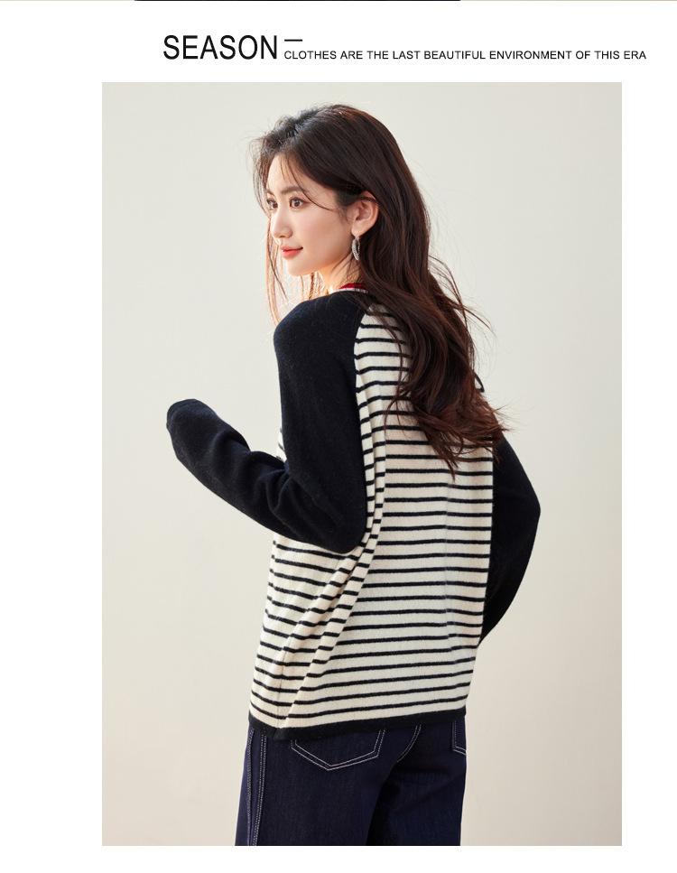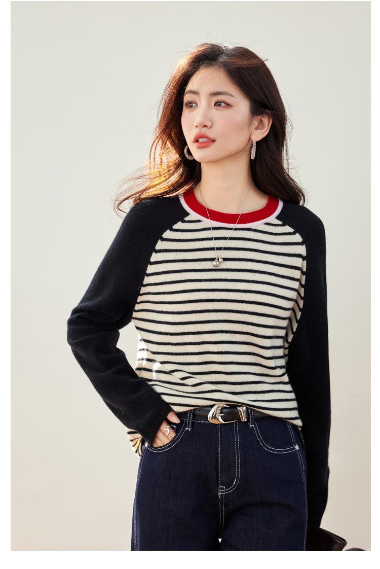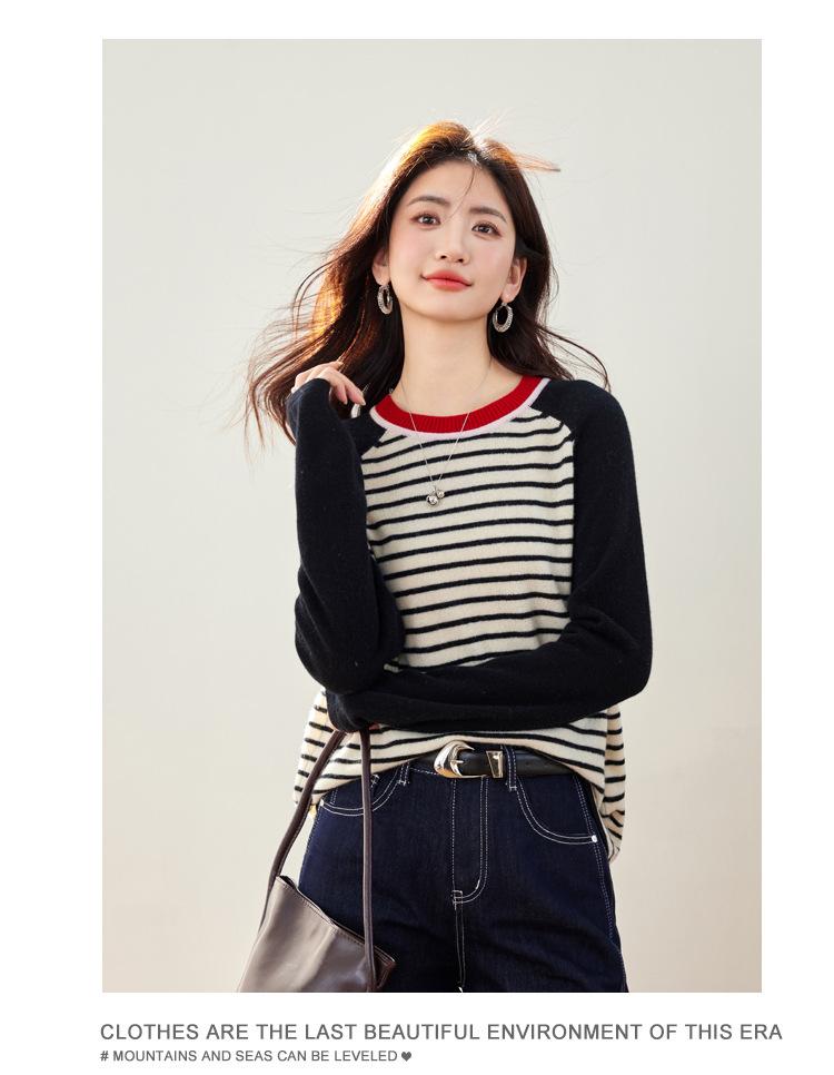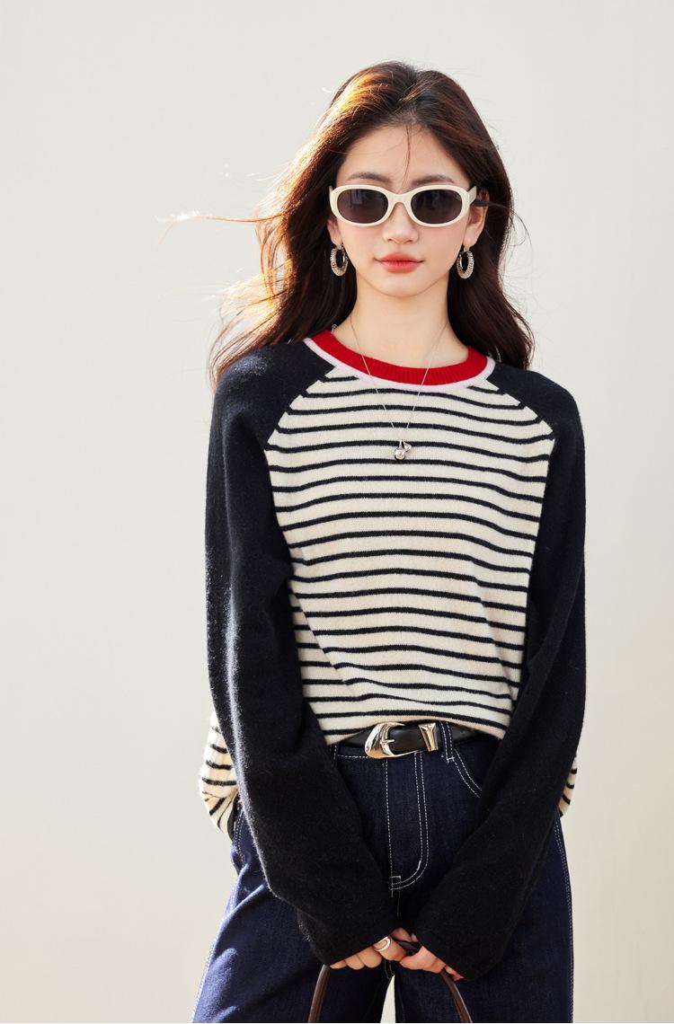 Outono 2025 Novo Estilo Coreano Casual Versátil Preguiçoso Listrado Solto Pulôver Bloco de Cores Gola Redonda Manga Longa Suéter Tricotado Feminino