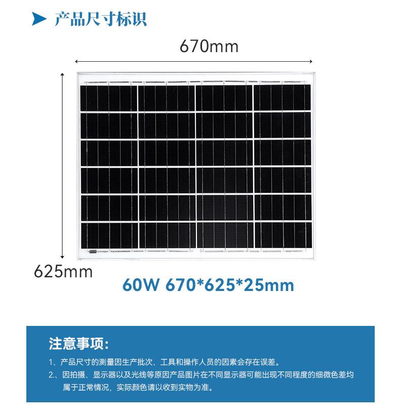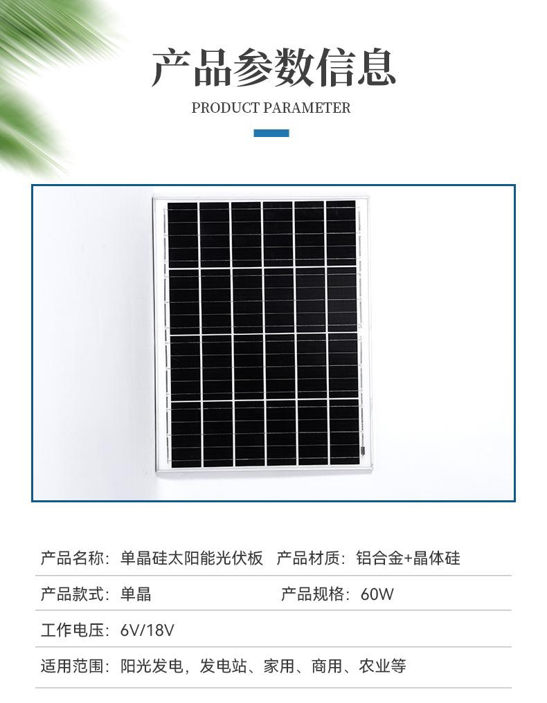 Painel fotovoltaico solar de silício monocristalino 60W atacado de fábrica 6V18V painel solar geração de energia painel fotovoltaico