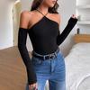 2025 Verão Novo Body Básico de Manga Curta Feminino Decote V Profundo Sexy Ajuste Slim Emagrecimento Cor Sólida Botão Top Versátil