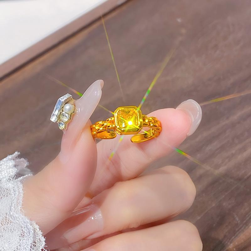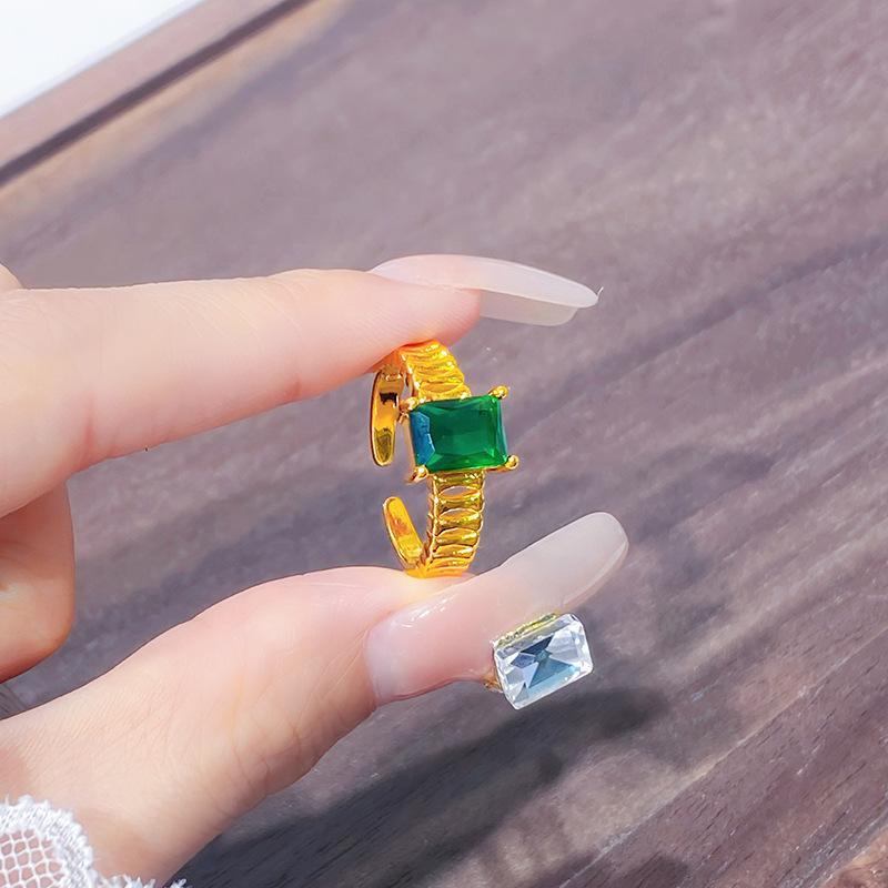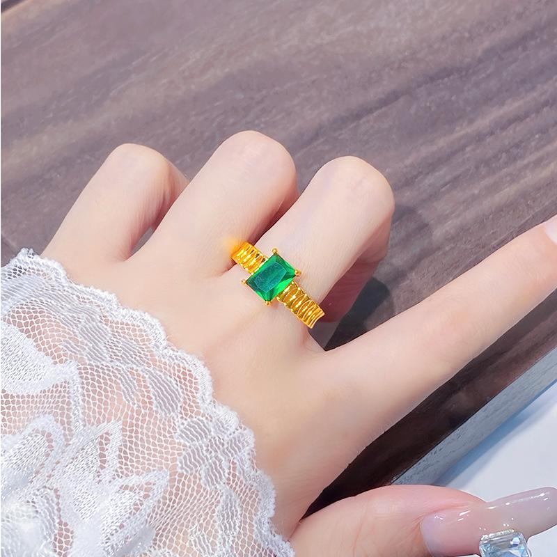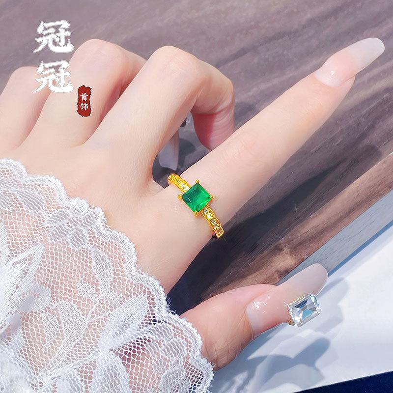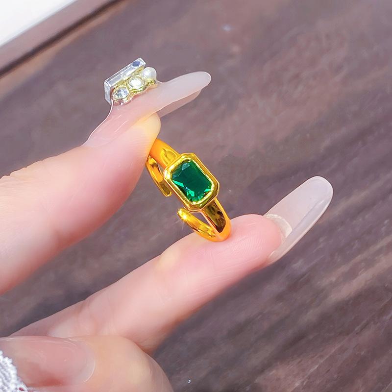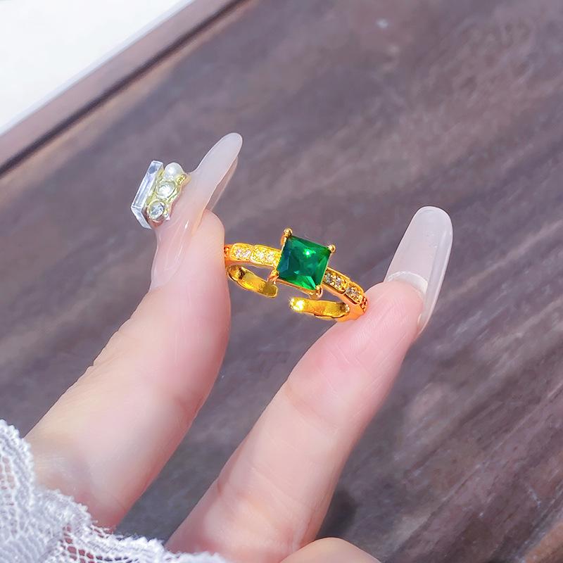 Anel Aberto de Ouro Areia Antigo Esmeralda Design de Nicho Feminino Diamante High-End Luz de Luxo Longa Duração Atacado