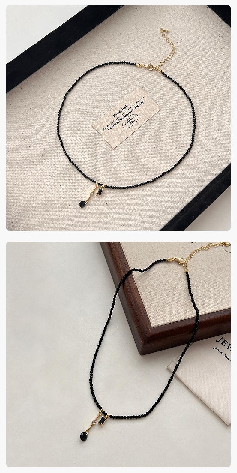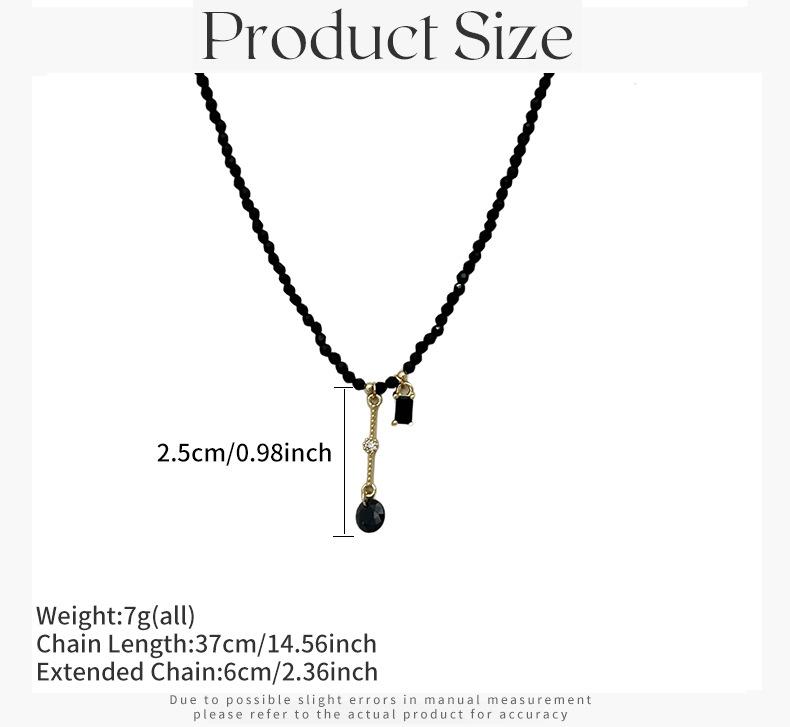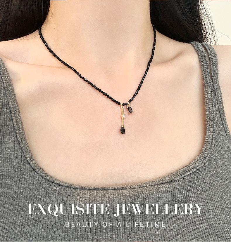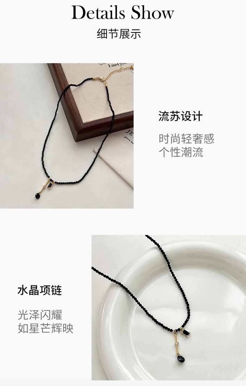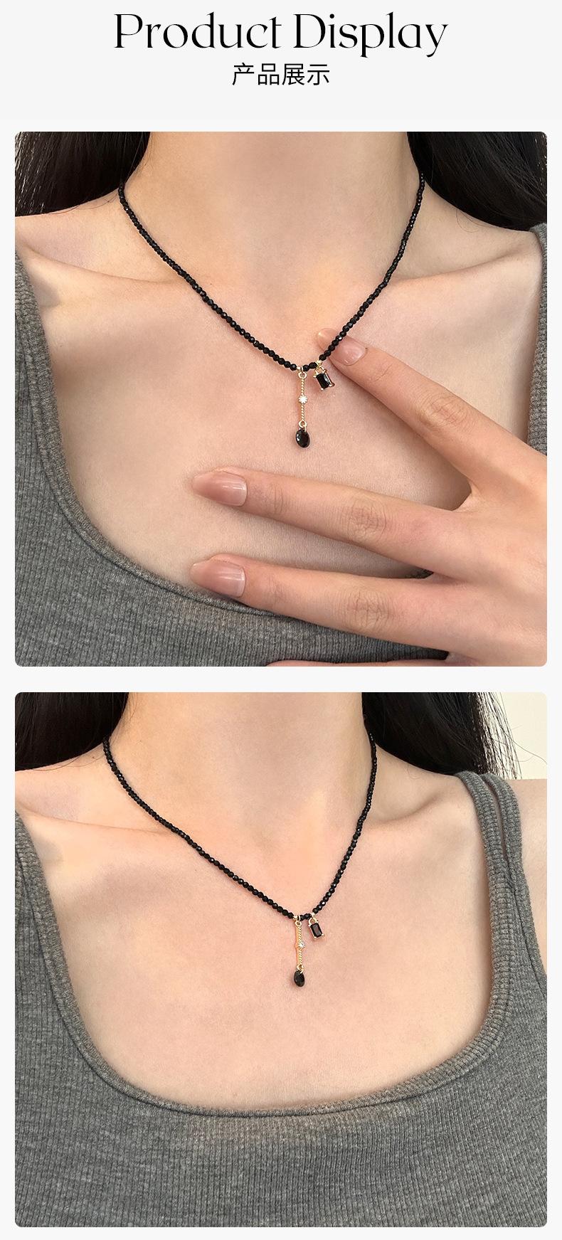 Colar Retro de Borla de Cristal Preto Colar Curto de Design de Nicho de Alto Nível para Mulheres Luxo Acessível Elegante Corrente para Clavícula