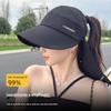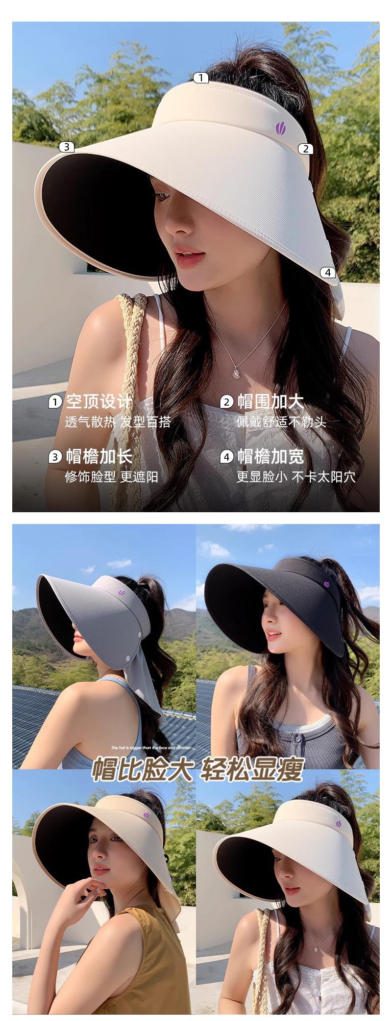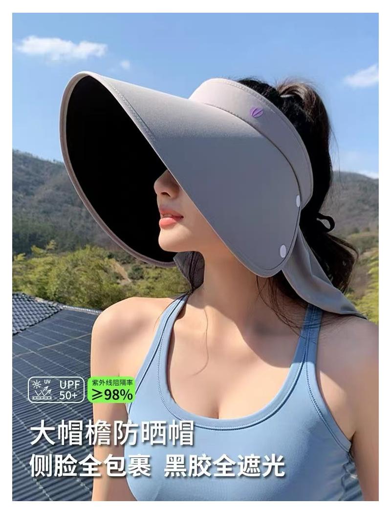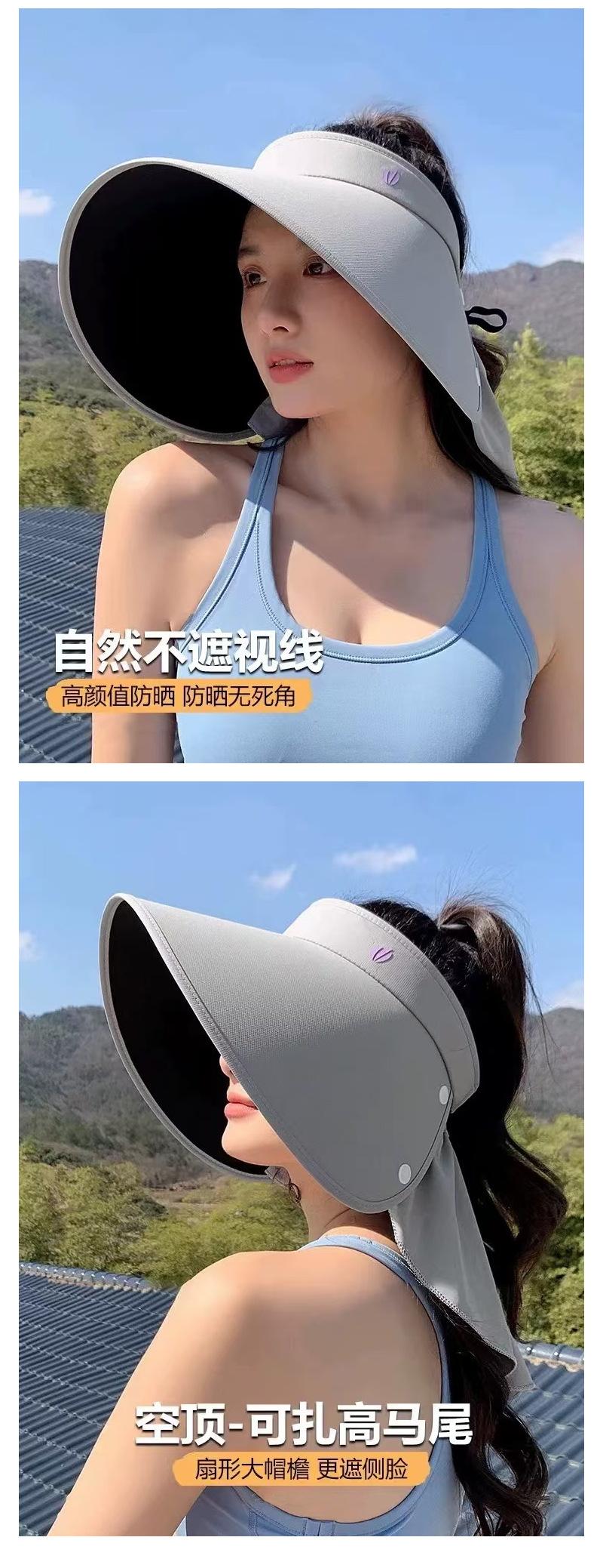 Proteção Solar Chapéu de Sol Feminino Versão Grande Xale Top Vazio Removível Chapéu de Proteção de Pescoço Verão Preto Borracha Proteção UV Chapéu de Sol