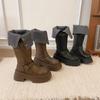 Botas Outono e Inverno 2025 Novas Botas Antiderrapantes Botas Slim Roupa Exterior Salto Grosso Elegante Cor Pura Botas Acima do Joelho