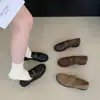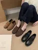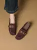 Mocassim Médio-Baixo Estilo Francês Retrô Bico Fino Elástico Boca em V Primavera 2025 Novo Estilo Couro Macio Real Sapatos de Vovó para Mulheres