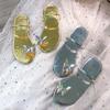 Versão Coreana Estilo Pe Letra Novo Um-W Strass 2023 Sandálias Femininas Newom Chinelos Rasteiros para Mulheres