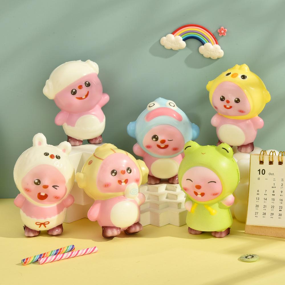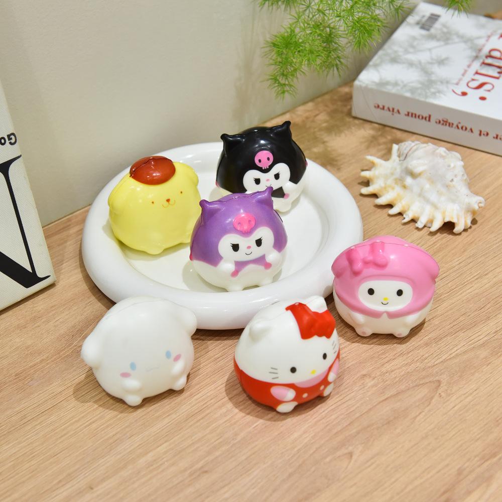 Boneca Musical Amassadora de Ovos Sanrio Fofa Boba Reação Lenta Urso Morango Crayon Shin Chan Brinquedo de Ventilação Descompressão
