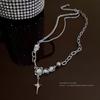 Colar Cruz Pedra da Lua para Mulheres, Verão Acessível Luxo Nicho Design Sexy Corrente Clavícula Acessórios Populares