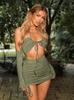 Estilo europeu e americano 2025 verão nova roupa feminina sexy cor sólida manga curta frente única amarração cordão caimento justo vestido justo ao quadril