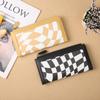 Carteira Simples Feminina Estilo Coreano Longa com Zíper Estampa Patchwork Moda Porta-Moedas Porta-Cartões Bolsa de Mão
