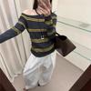 Outono 2025 Novo Estilo Coreano Curto Bloco de Cores Moda Design Slim-Fit Nicho Top Tricotado para Mulheres
