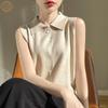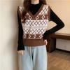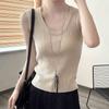 Novo Outono e Inverno Cor Sólida Listrado Gola Redonda Sem Mangas Colete Tricotado Top Versátil Casual Básico Simples Solto Feminino