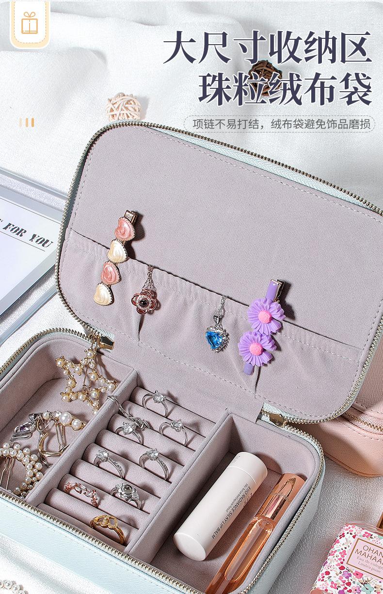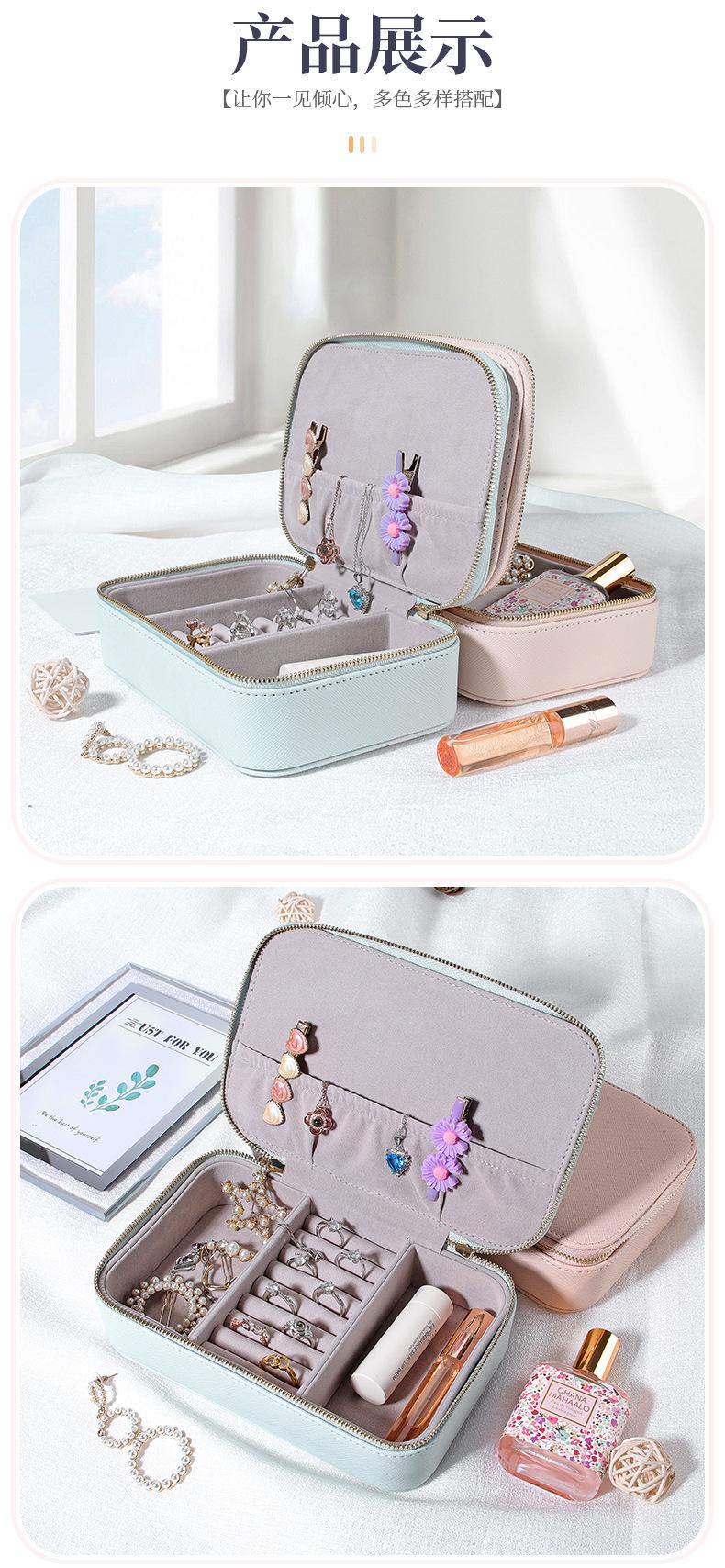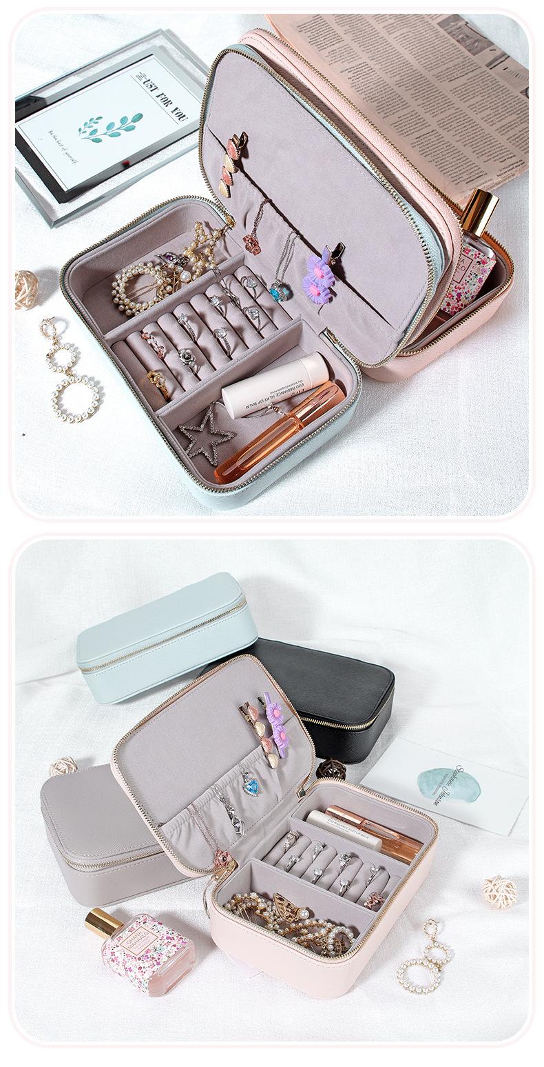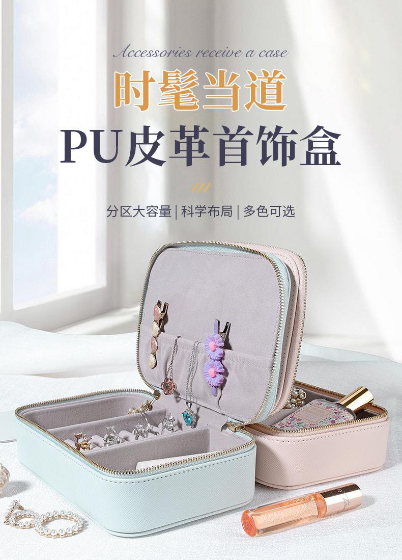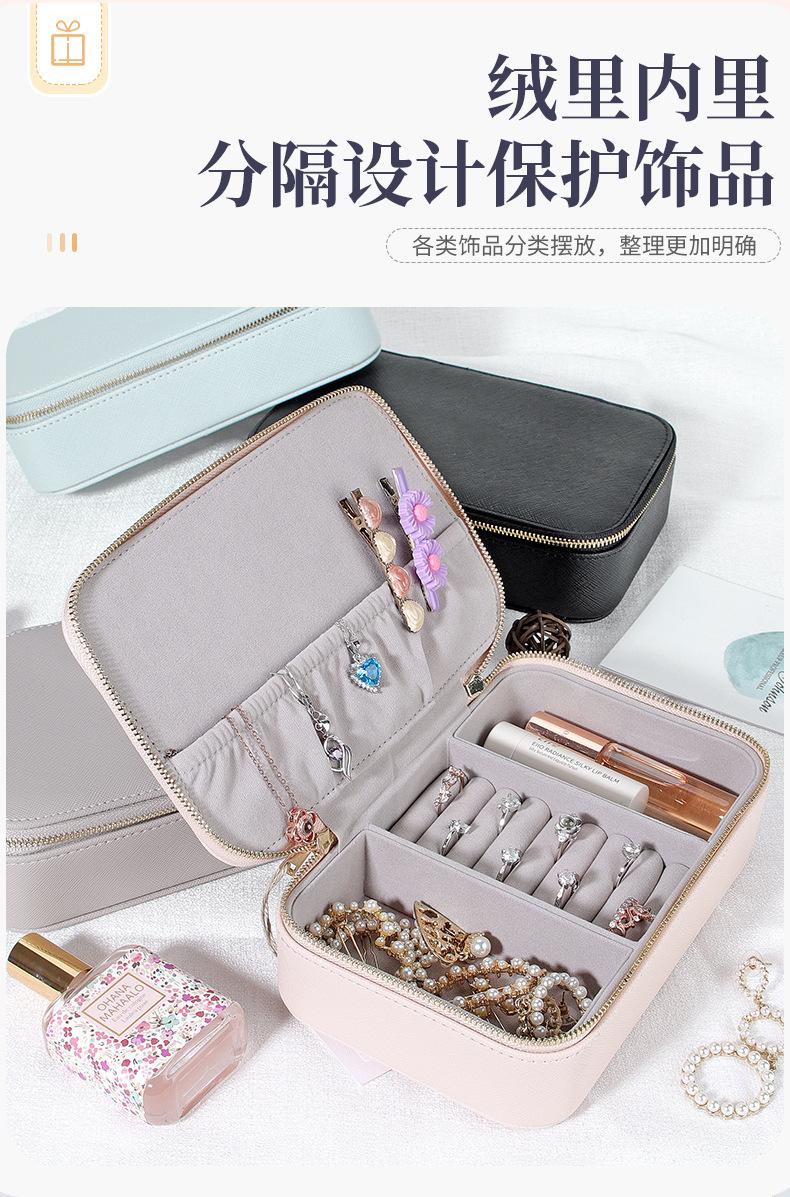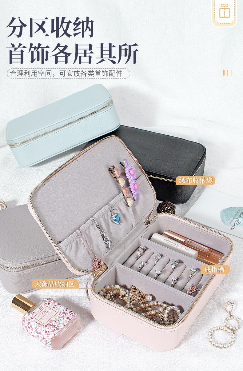 Caixa de joias de couro PU transfronteiriça portátil simples brincos anel batom caixa de armazenamento de joias caixa de embalagem de joias