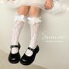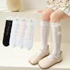 Meias de Meia Panturrilha para Meninas Verão Finas Meias Lolita de Panturrilha para Crianças Meias Princesa de Renda Branca Respirável de Malha para Menina