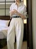 Jicouture All-match Camisa listrada feminina de manga comprida, gola polo solta, estilo francês, casual, outono