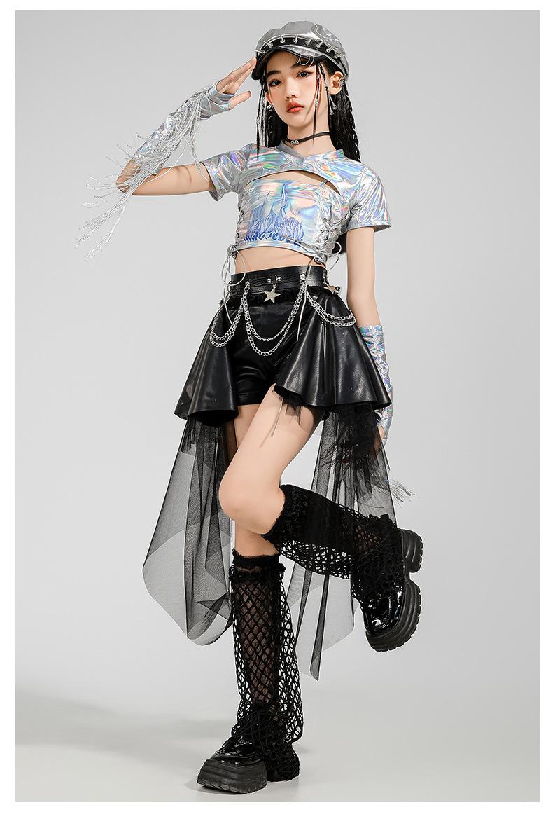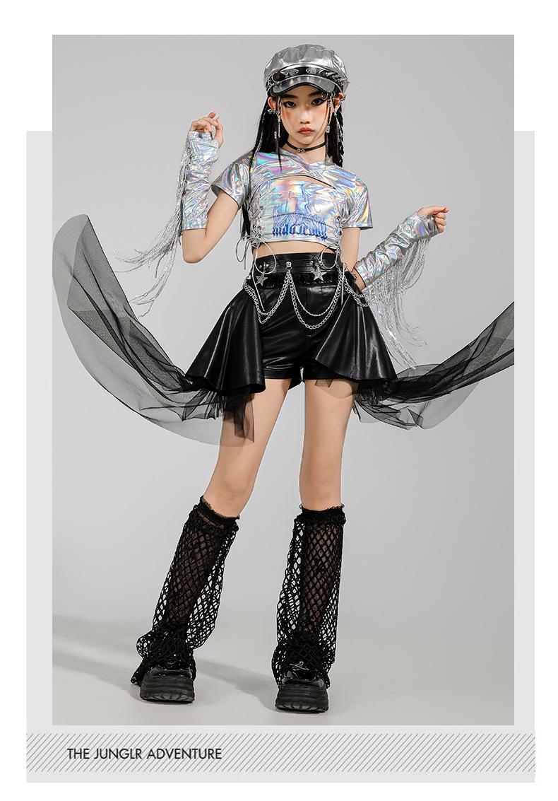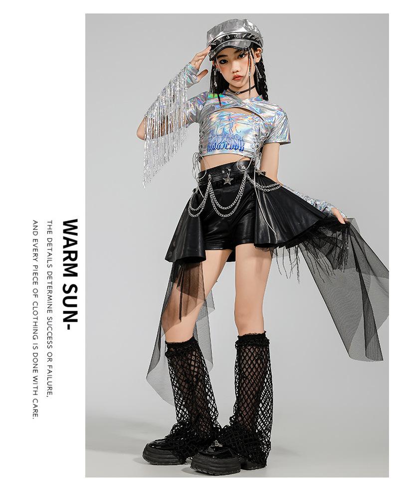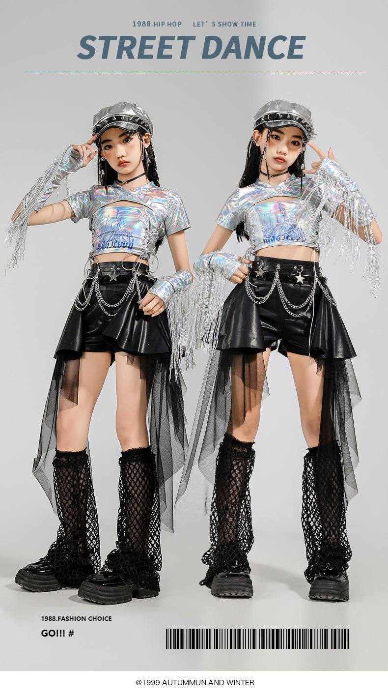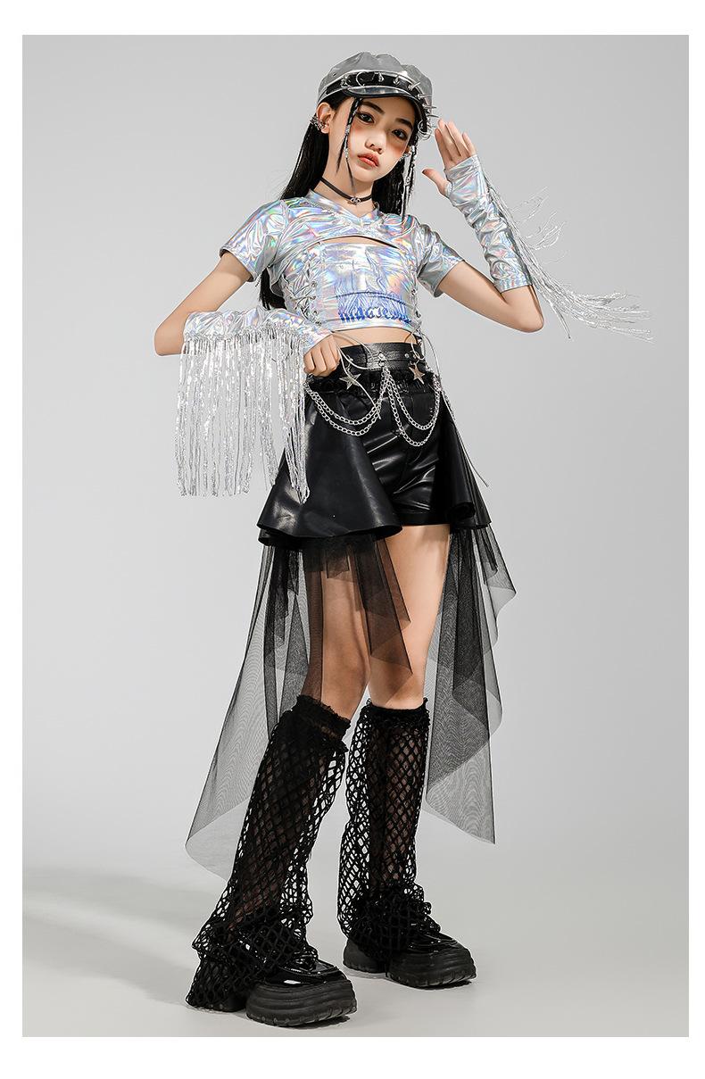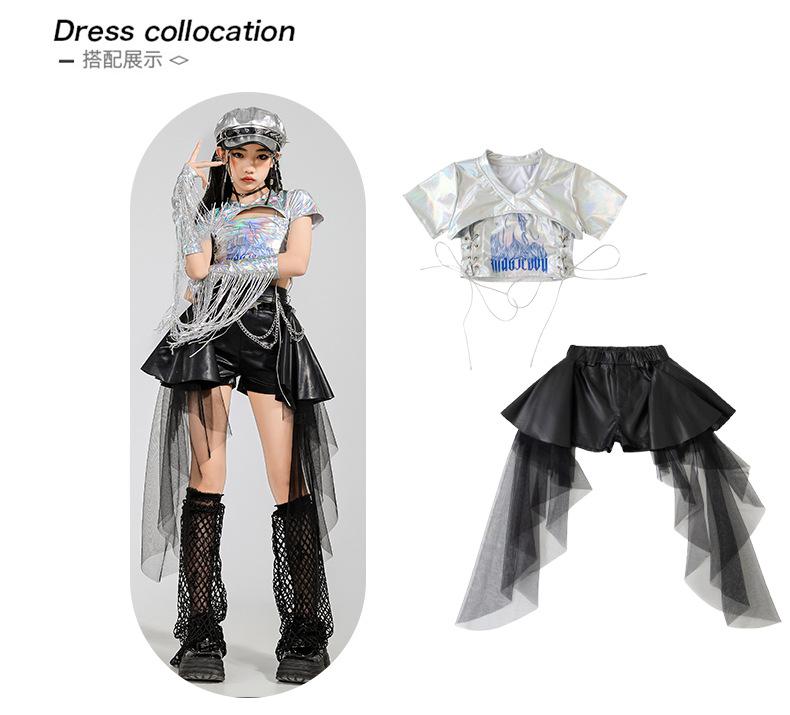 Fantasia de Dança Jazz Infantil Saia de Fita Jazz Moderna para Meninas Conjunto de Performance de Dança para Palco/Passarela de Grupo de Meninas Modernas e Descoladas