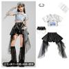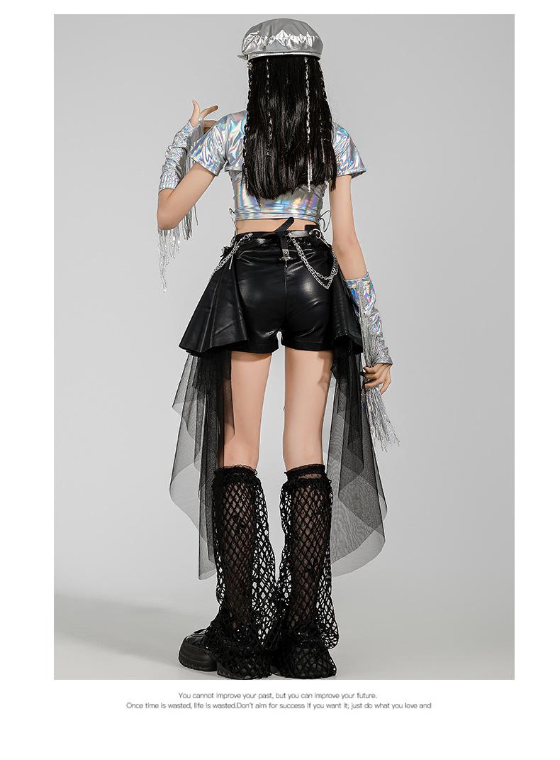 D46 silver shiny short sleeve (with silver tassel arm warmers) + K33 black ribbon dress, D46 silver shiny shor...