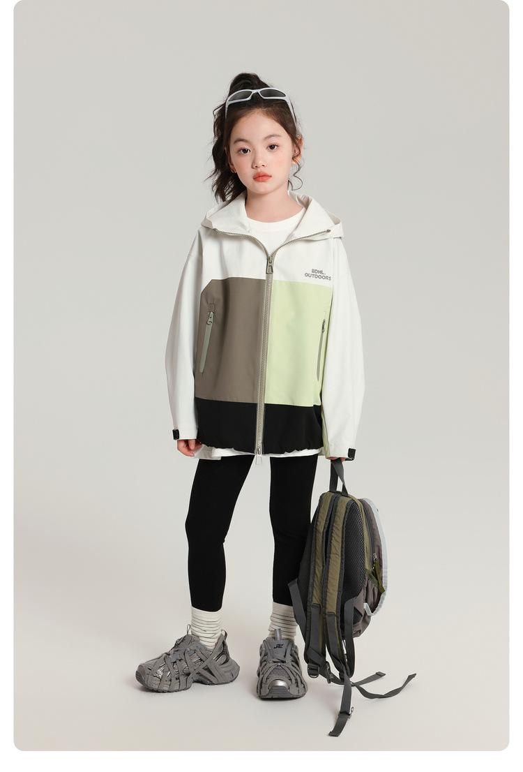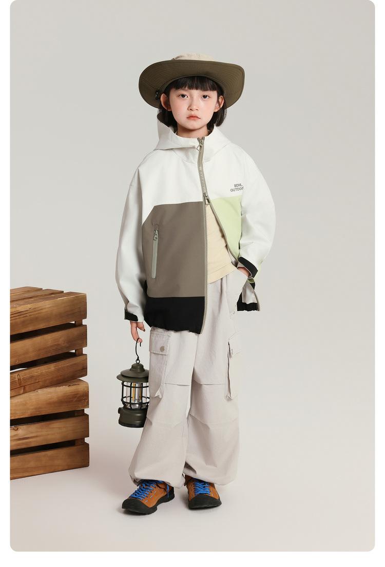 Casaco Infantil Pudding Haru 2025 Outono Novo Estilo Jaqueta Corta-vento Infantil Versátil com Capuz