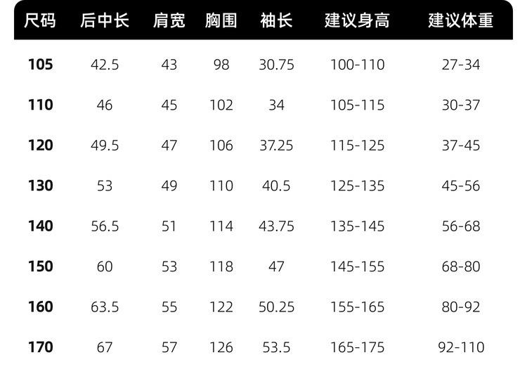 Children (3~8 years old, 100~140cm)