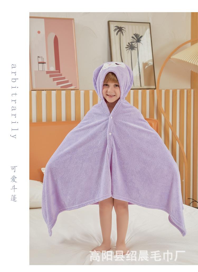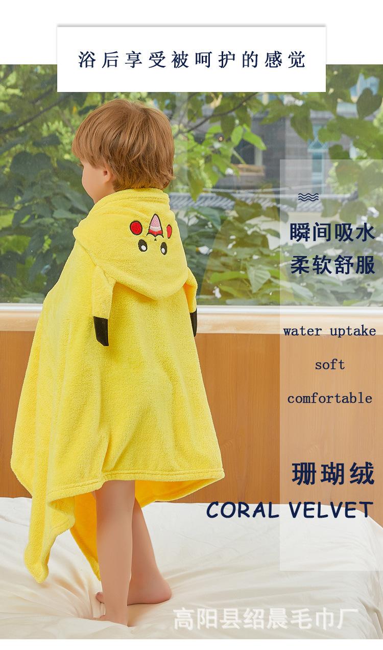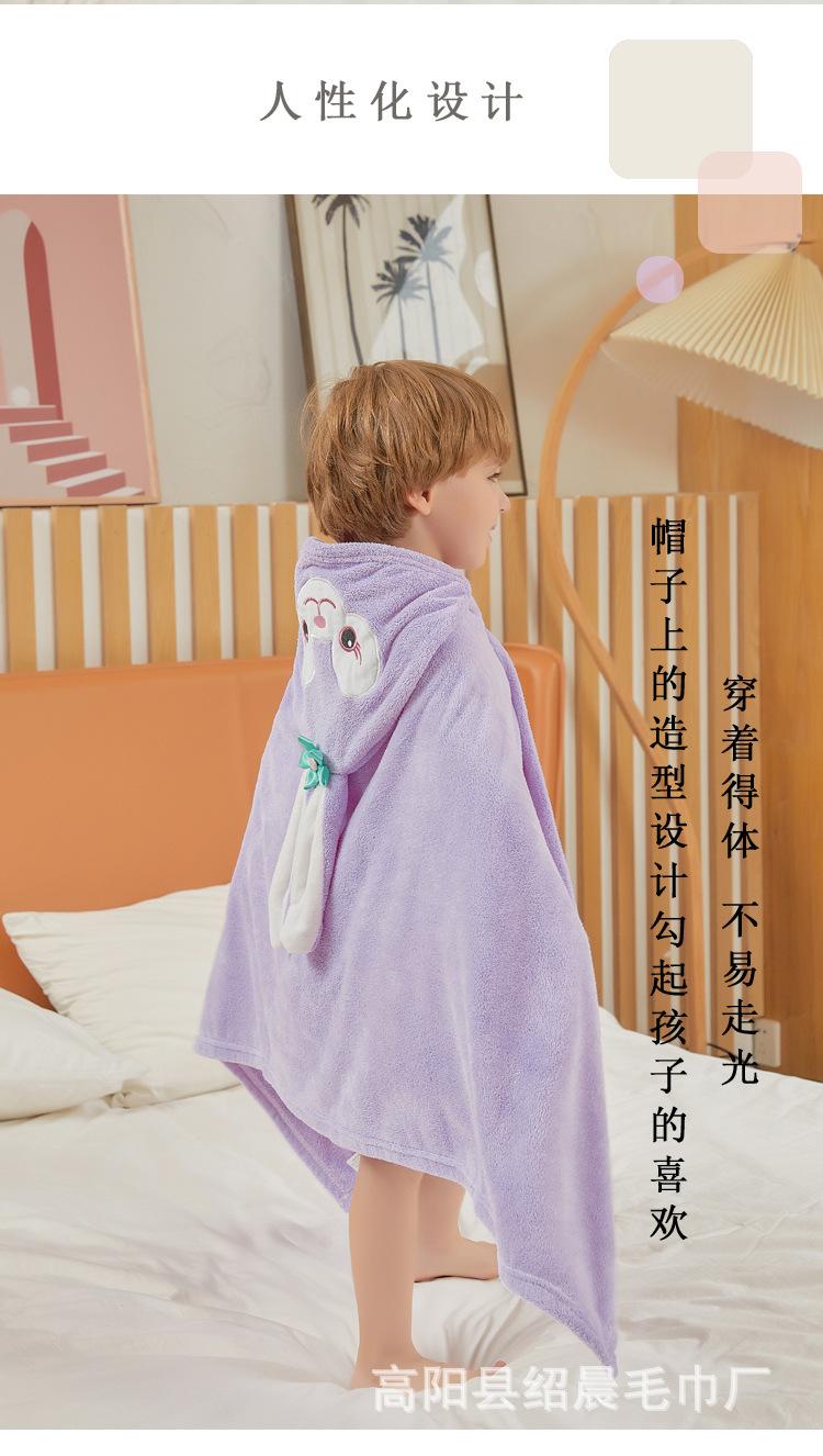 Capa infantil de fleece coral, atacado de fábrica, secagem rápida, capa com capuz de desenho animado, toalha de banho, roupão macio e absorvente, colcha