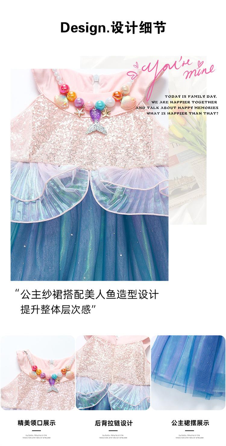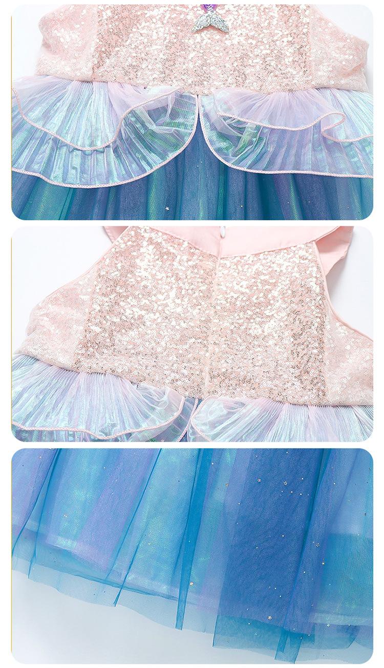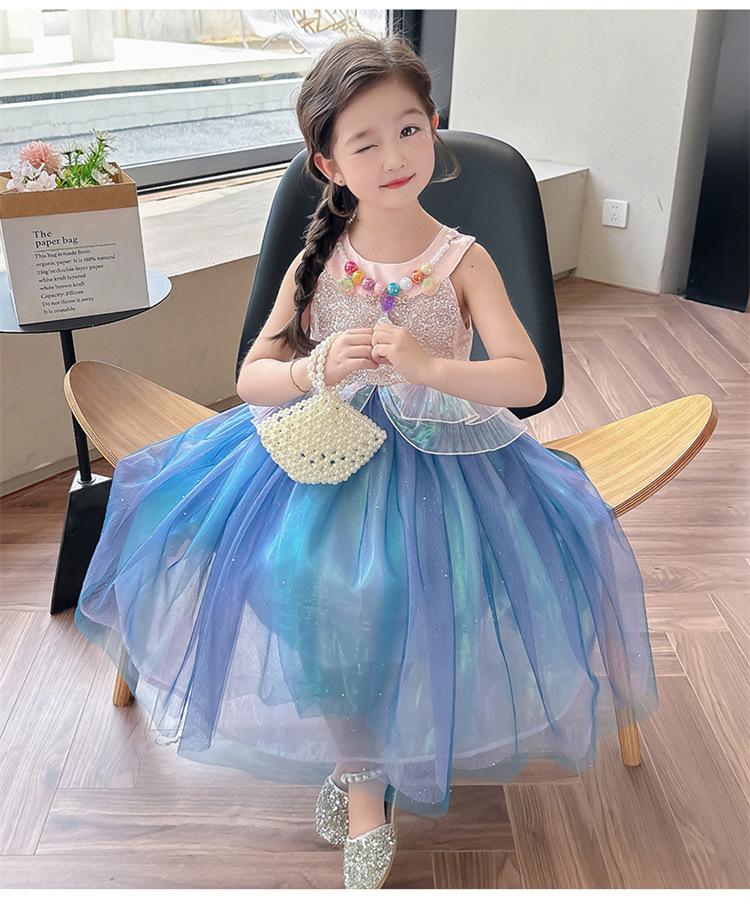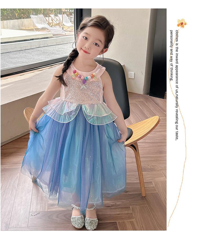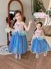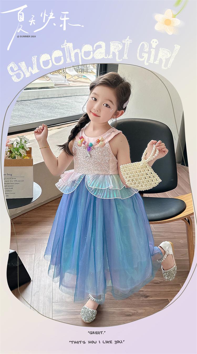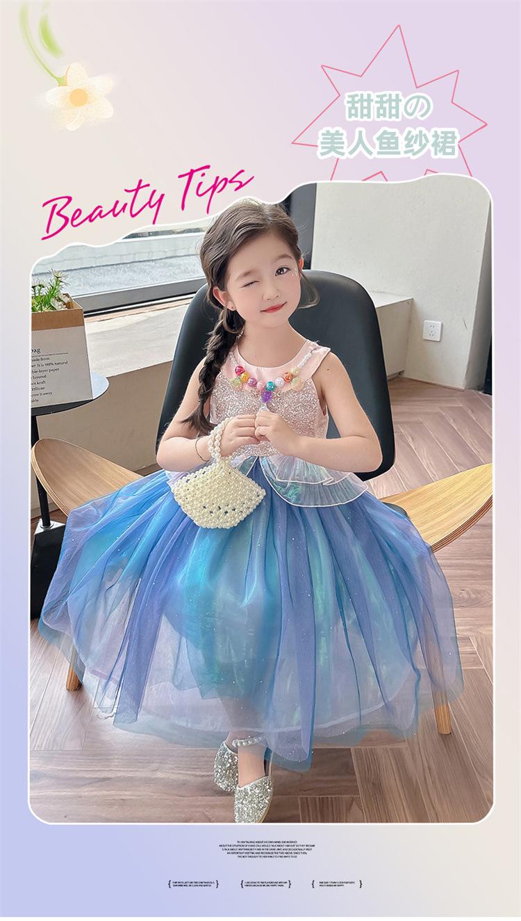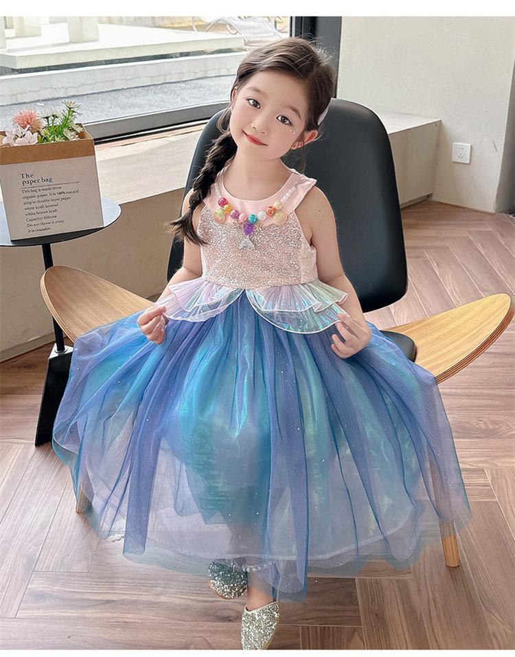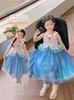 Vestido de Verão de Sereia Princesa para Meninas 2024 Novo Vestido de Sereia Vestido da Moda para Meninas Vestido de Gaze de Verão