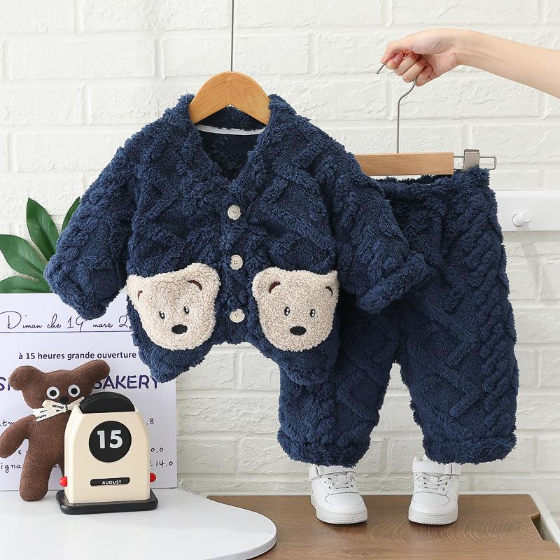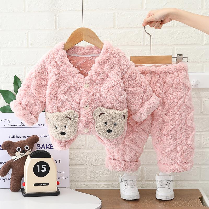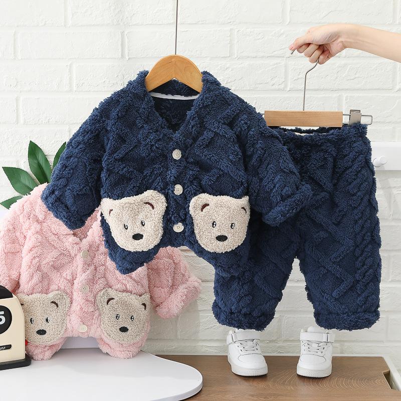 Pijama infantil outono e inverno meninos e meninas forrada com lã espessada bebê flanela roupa de casa meninos e meninas lã coral