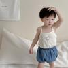 Roupa Moderna e Descolada para Meninos 2025 Verão Novo Bebê Rasgado Sem Mangas Estilo Coreano Shorts Jeans Azul Conjunto de Duas Peças Moderno