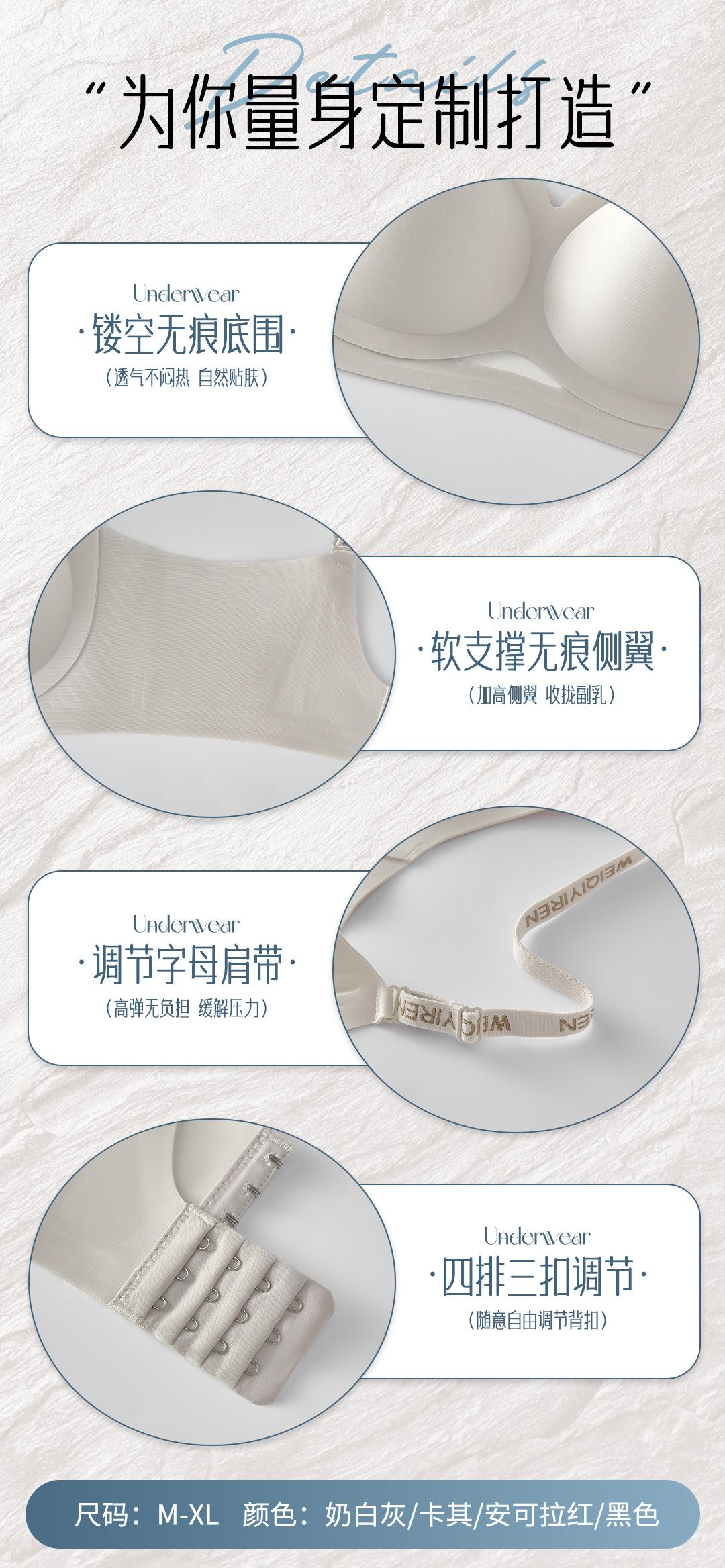 Gather, Traceless, Breathable, Push up, Anti-glare, Side collection, Breast reinforcement