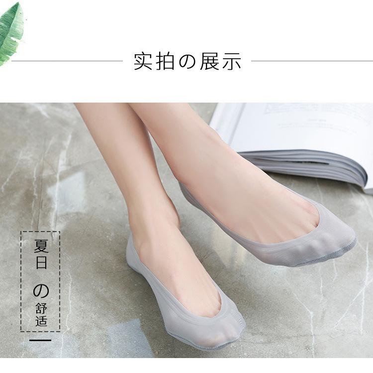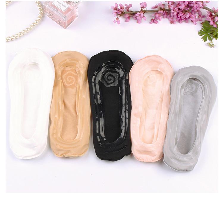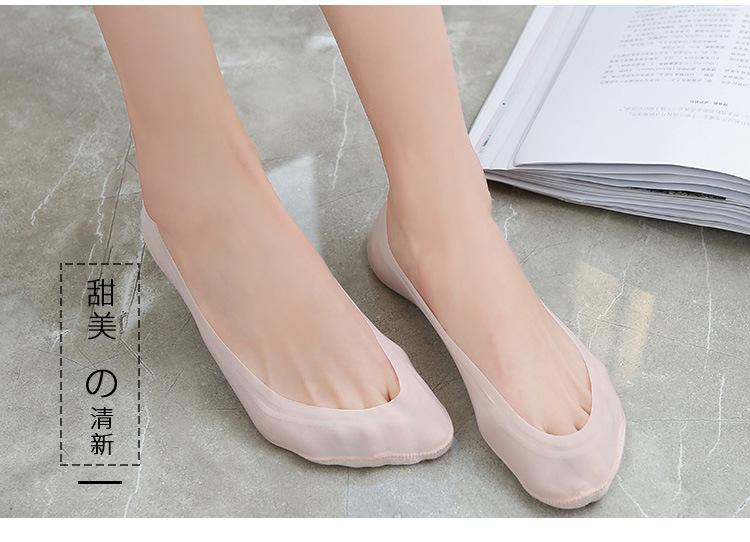 Meias Invisíveis Finas de Verão de Seda Gelo Sem Costura Meias de Barco Meias Rasas Femininas Antiderrapantes de Silicone com Sola Rosa Atacado