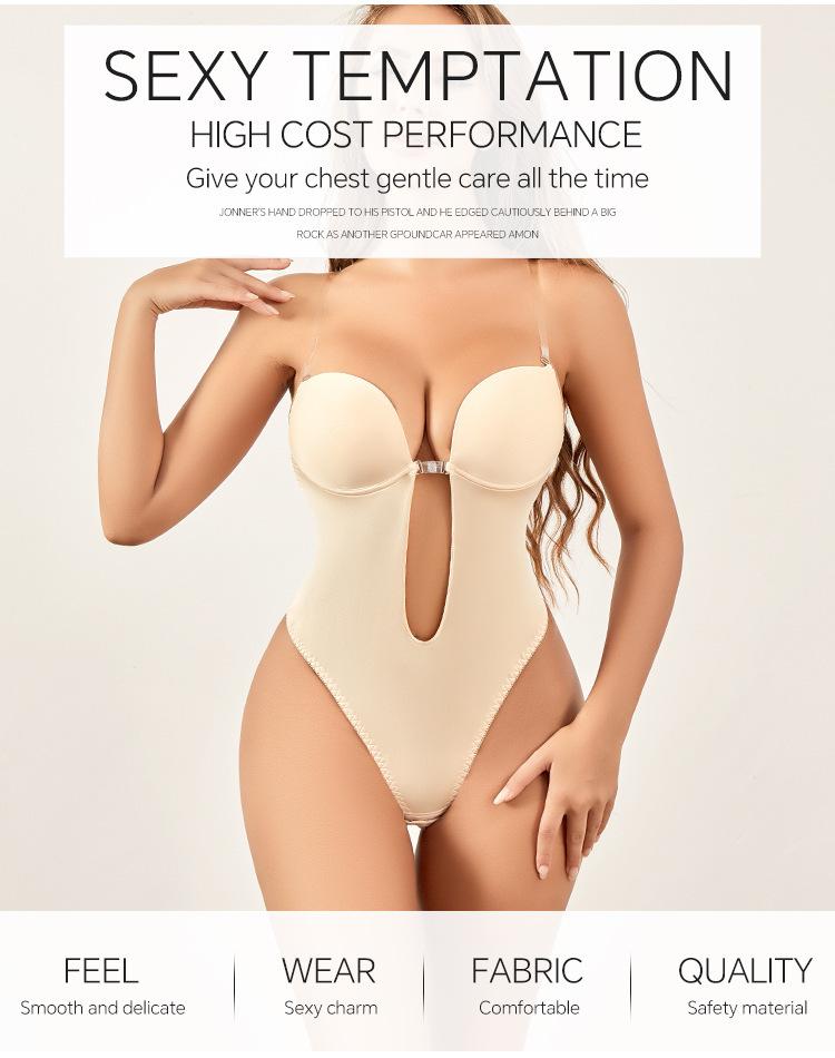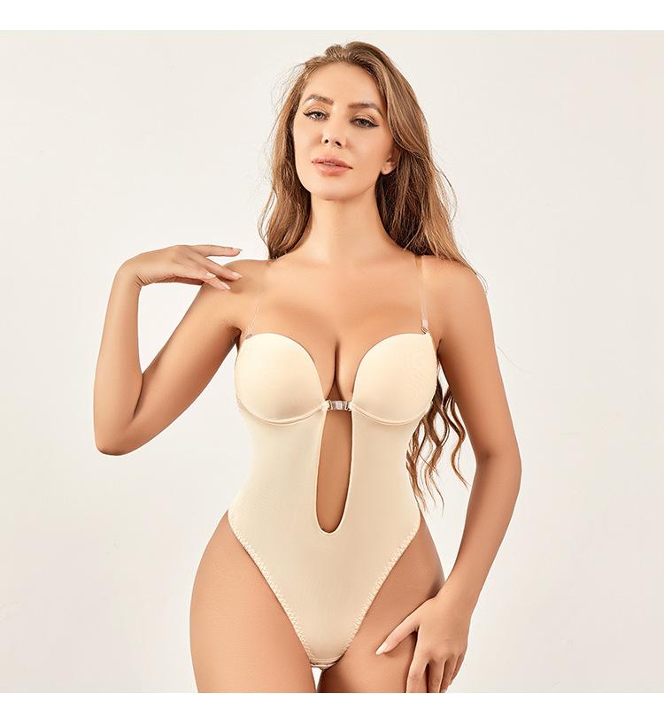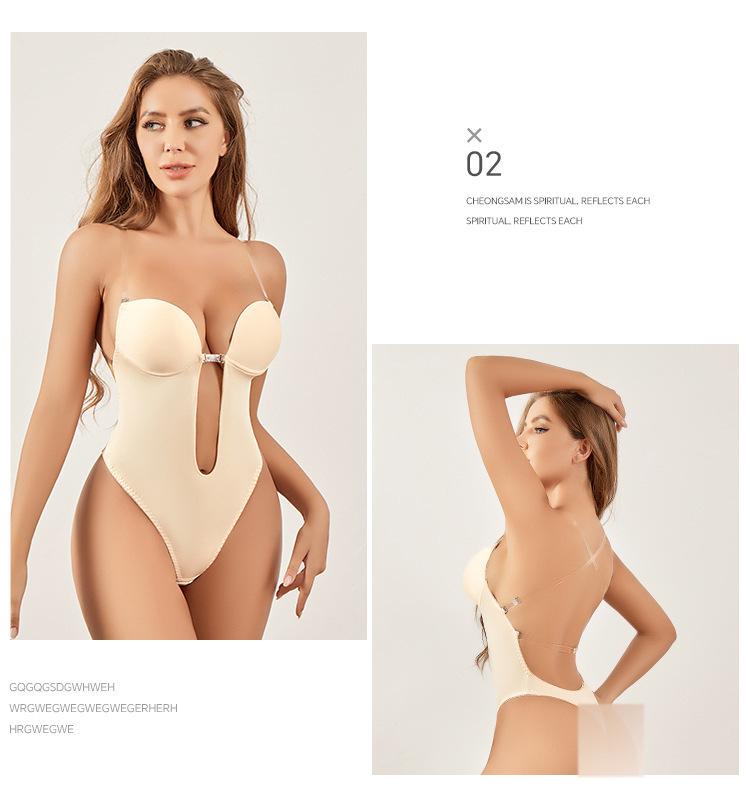 Macacão Decote V Profundo Explosões Europeias e Americanas Amazon Alça de Ombro Invisível Vestido Sem Costas Sutiã Roupas Modeladoras Sexy Sem Marcas para Mulheres