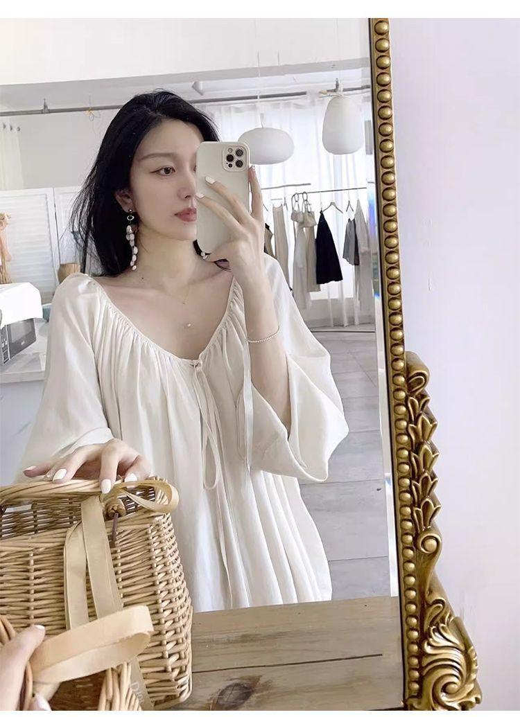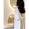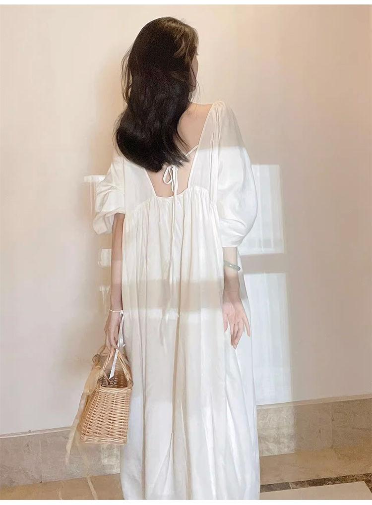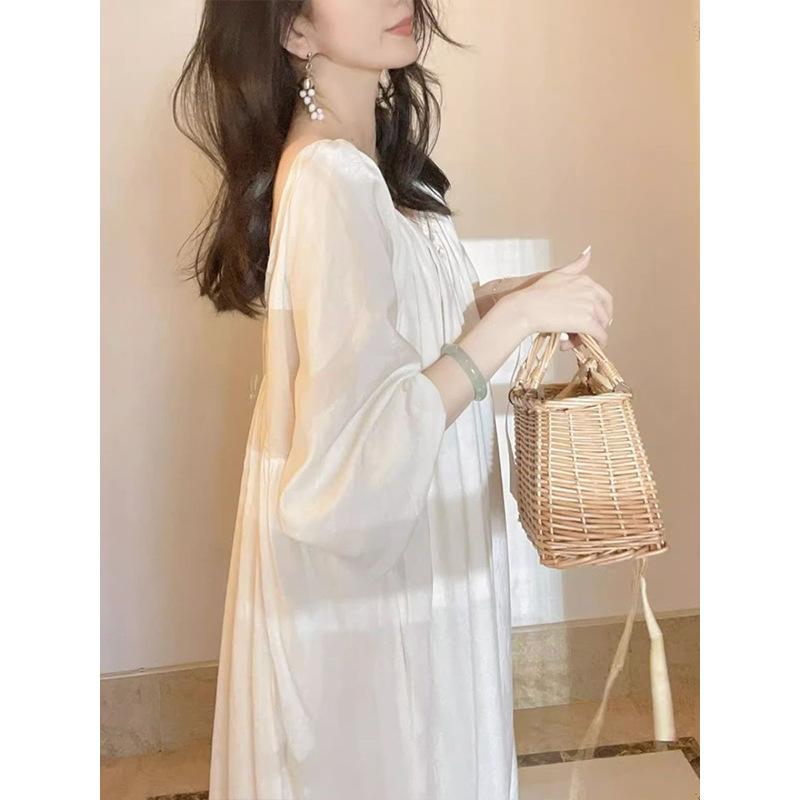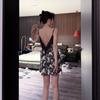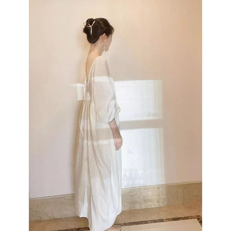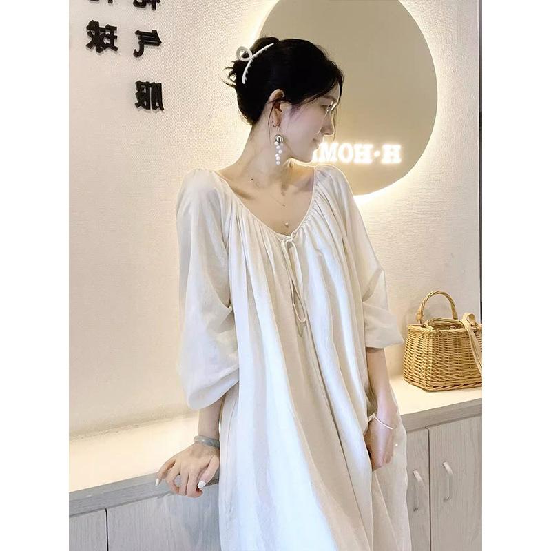 Pijama simples de alta qualidade estilo francês de manga comprida feminina 2024 primavera e verão vestido sem costas puro desejo plus size camisola de comprimento médio