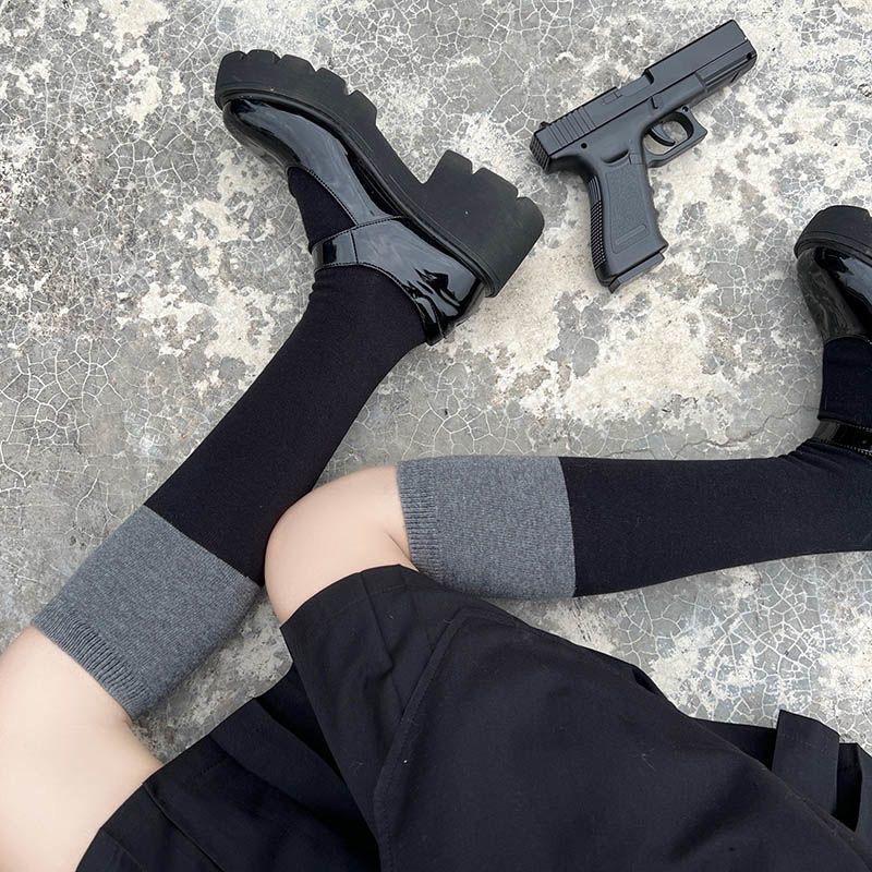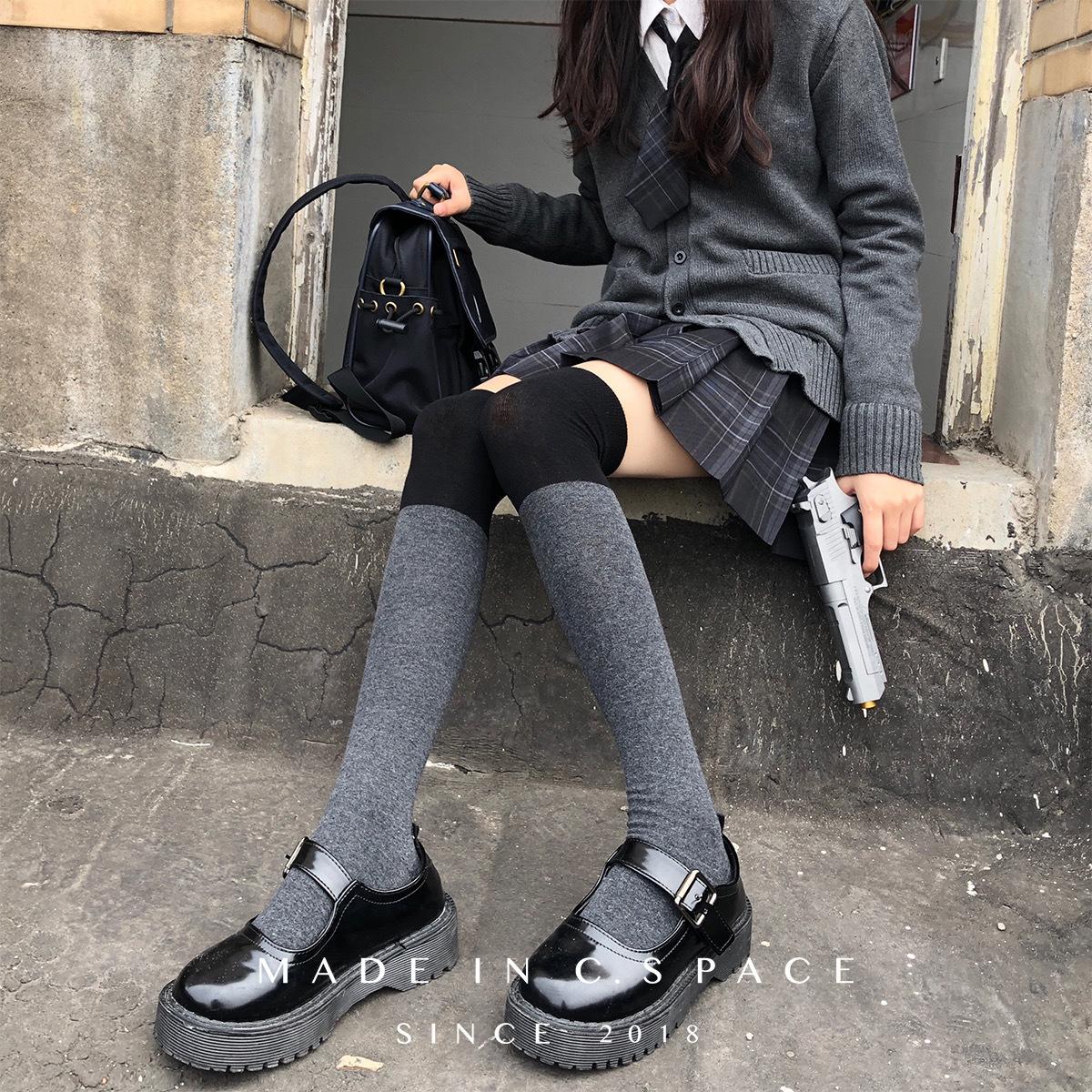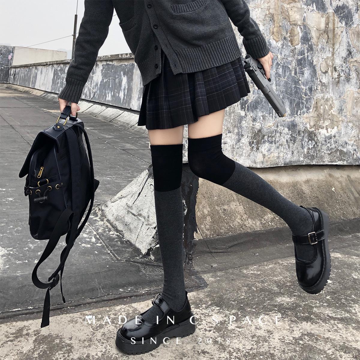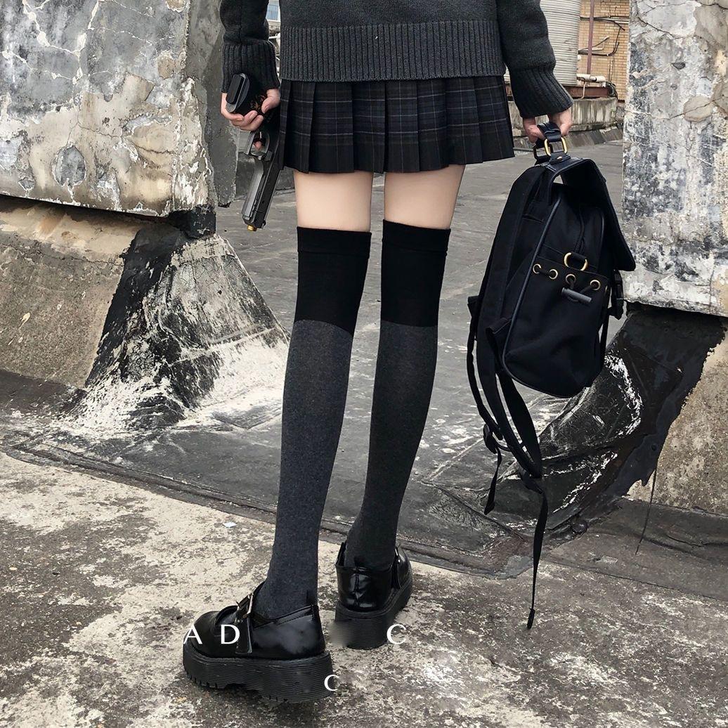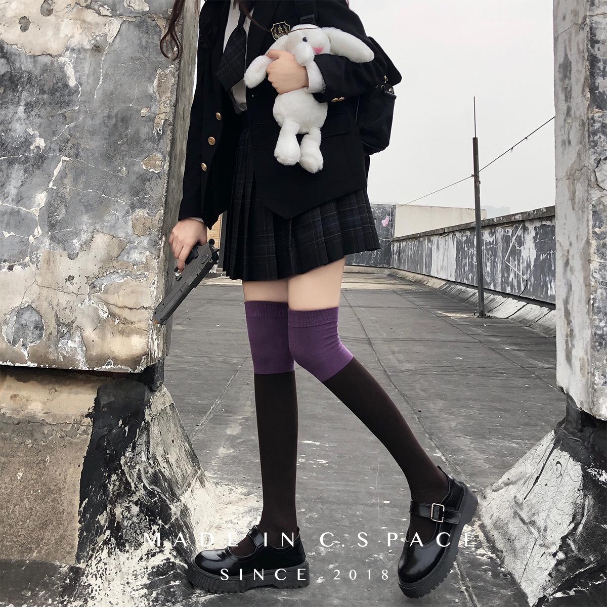 Purple dark coffee stitching (over-the-knee socks), Gray black stitching (over-the-knee socks)
