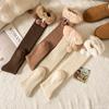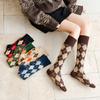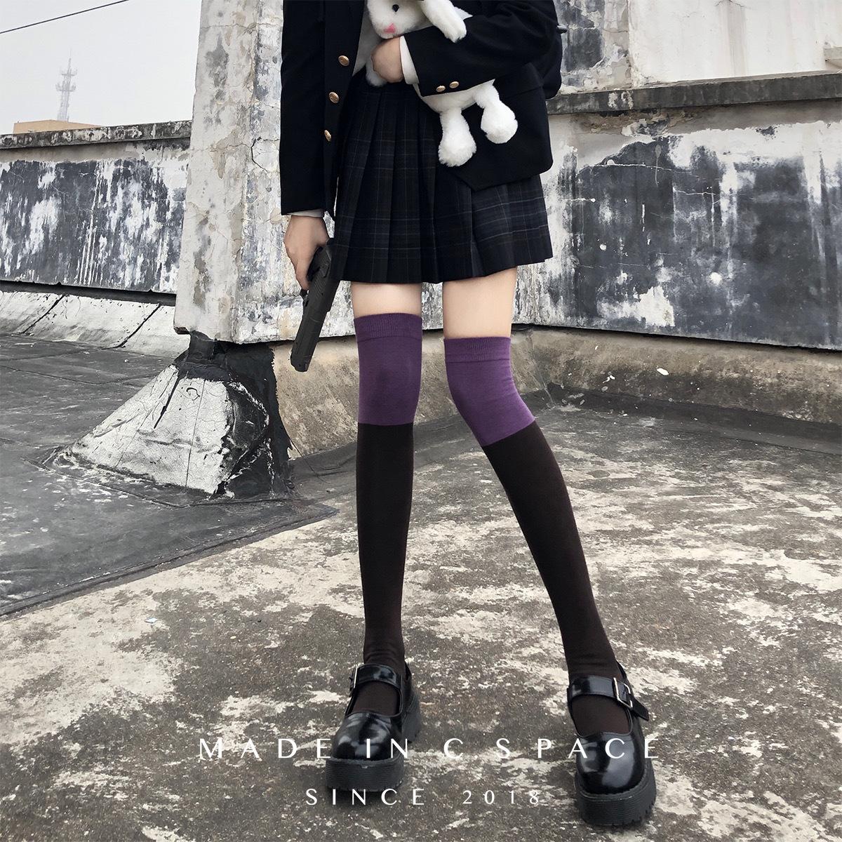 Meias roxas de comprimento médio até a panturrilha, meias de cor contrastante com costura, meias femininas grossas quentes de outono e inverno, meias altas de algodão japonês