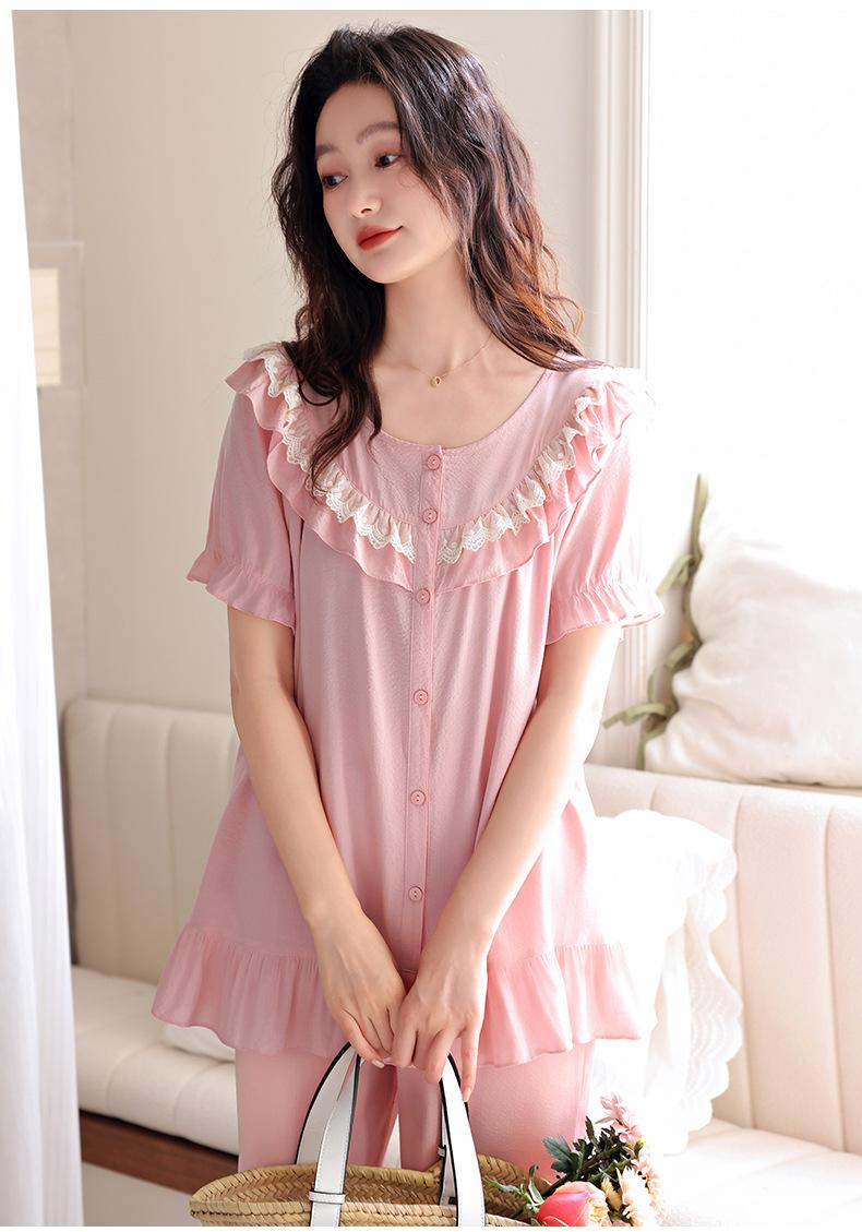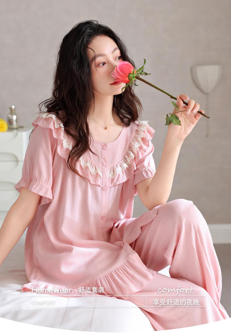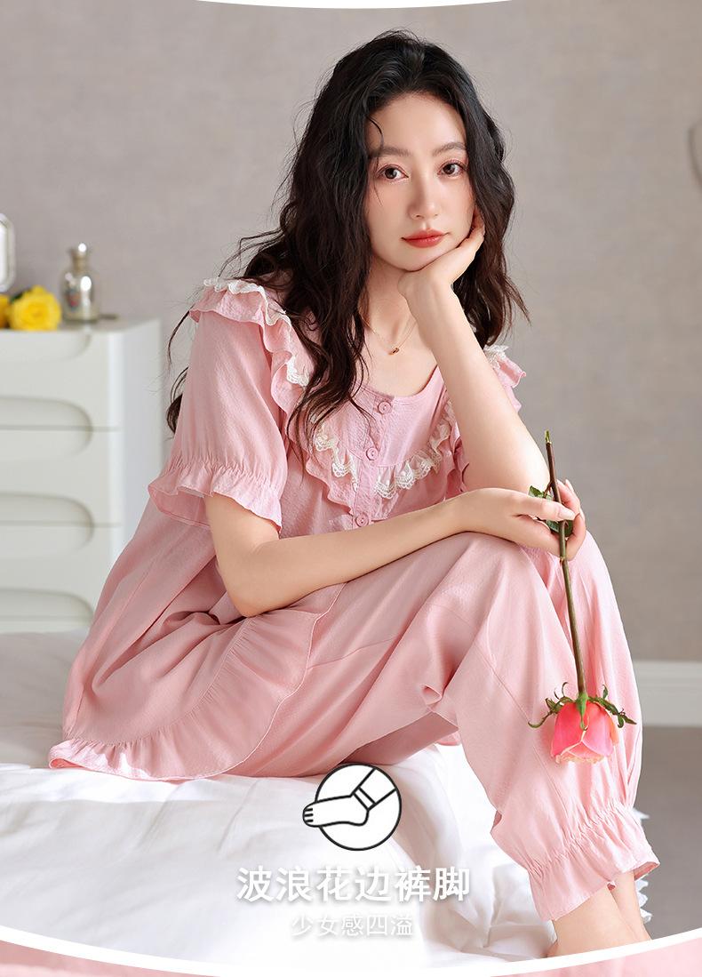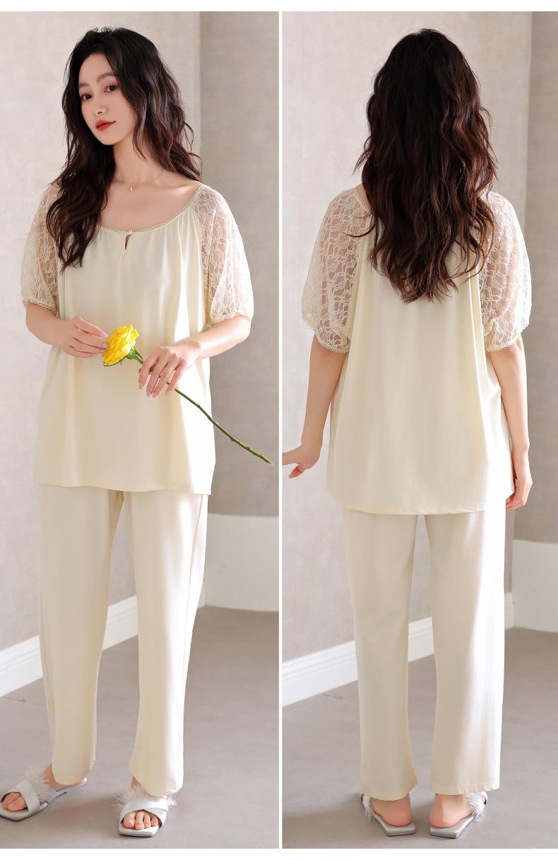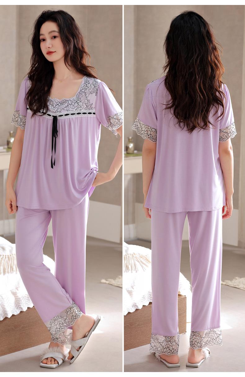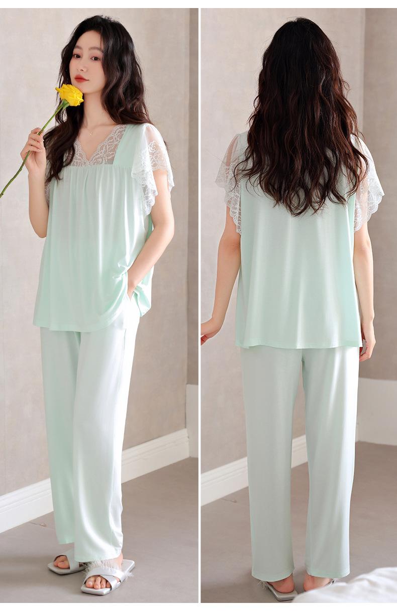 Verão Novo Modal Fresco Pijama Feminino Manga Curta Calças Soltas e Confortáveis Pode Ser Usado Fora Roupas de Casa Terno Fino