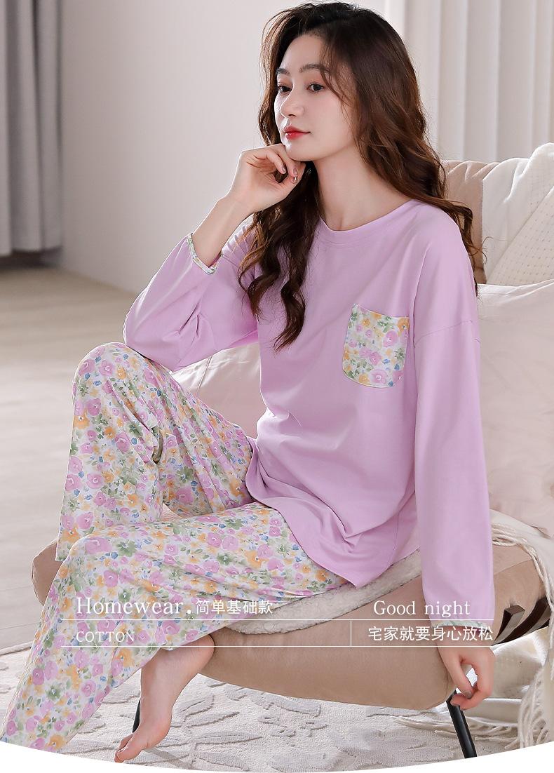 Pijama Feminino Outono Algodão Puro Pode Ser Usado Fora Roupa de Casa Todo Algodão Plus Size 2025 Outono/Inverno Novo Conjunto Casual Manga Longa