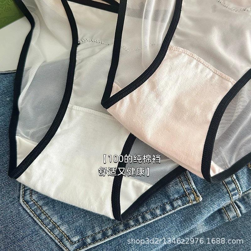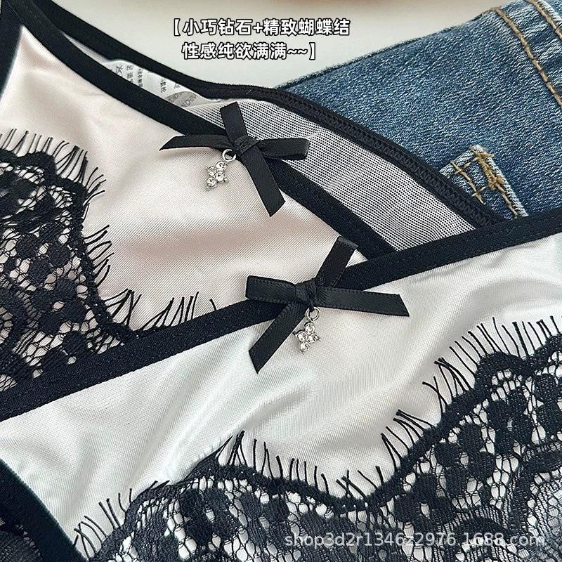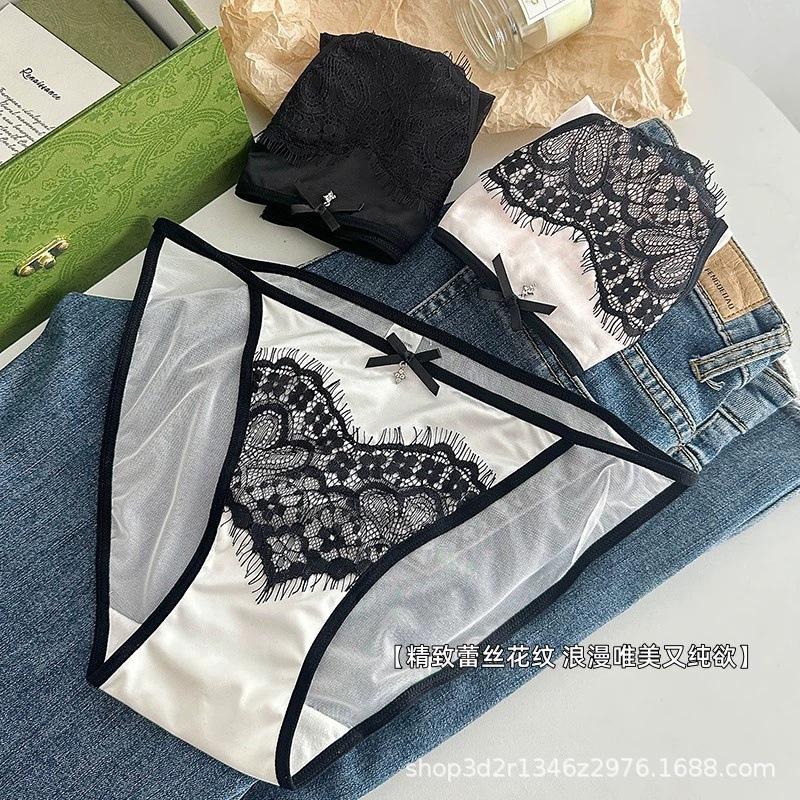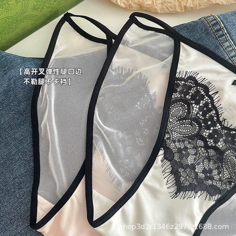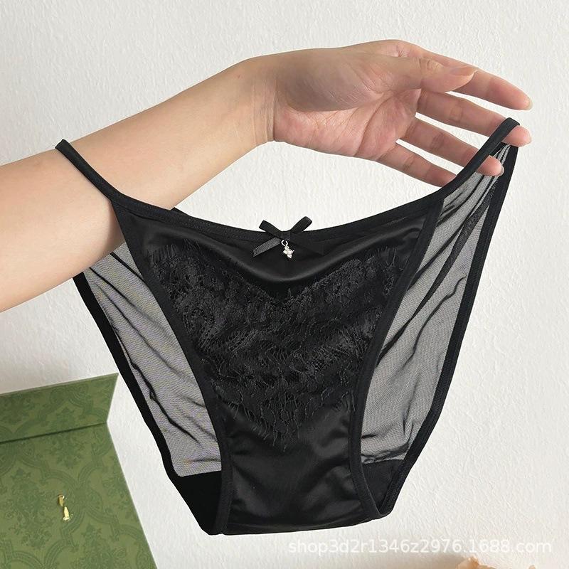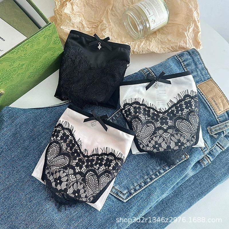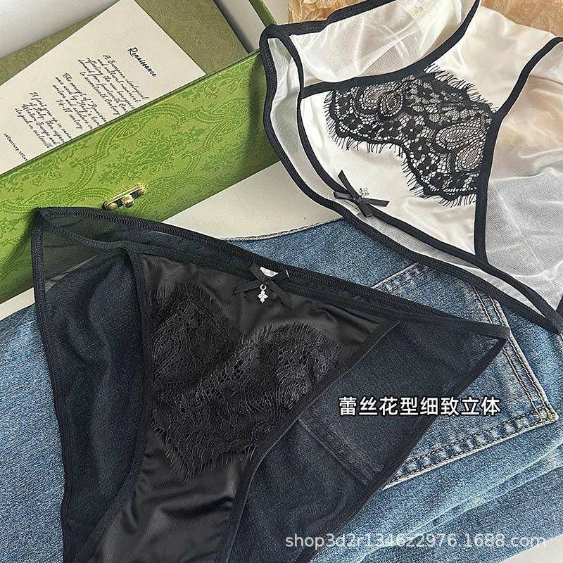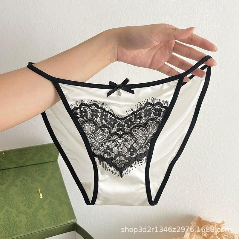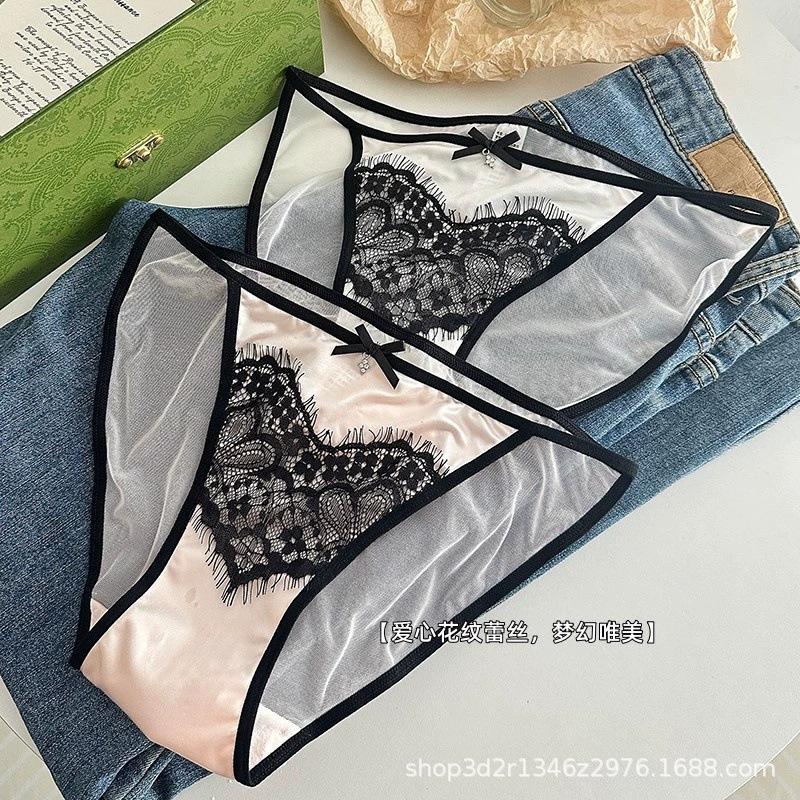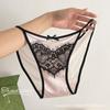 Roupa Íntima Sexy de Renda Transparente Transfronteiriça Feminina de Cintura Baixa Fina com Fenda Alta Sem Costura Calcinha Feminina Coração Cílios Botões de Flor